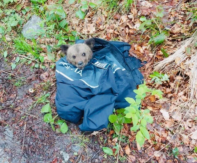 Polițiștii, salvatorii unui pui de urs în Sibiu. Cum a fost găsit de oamenii legii - FOTO