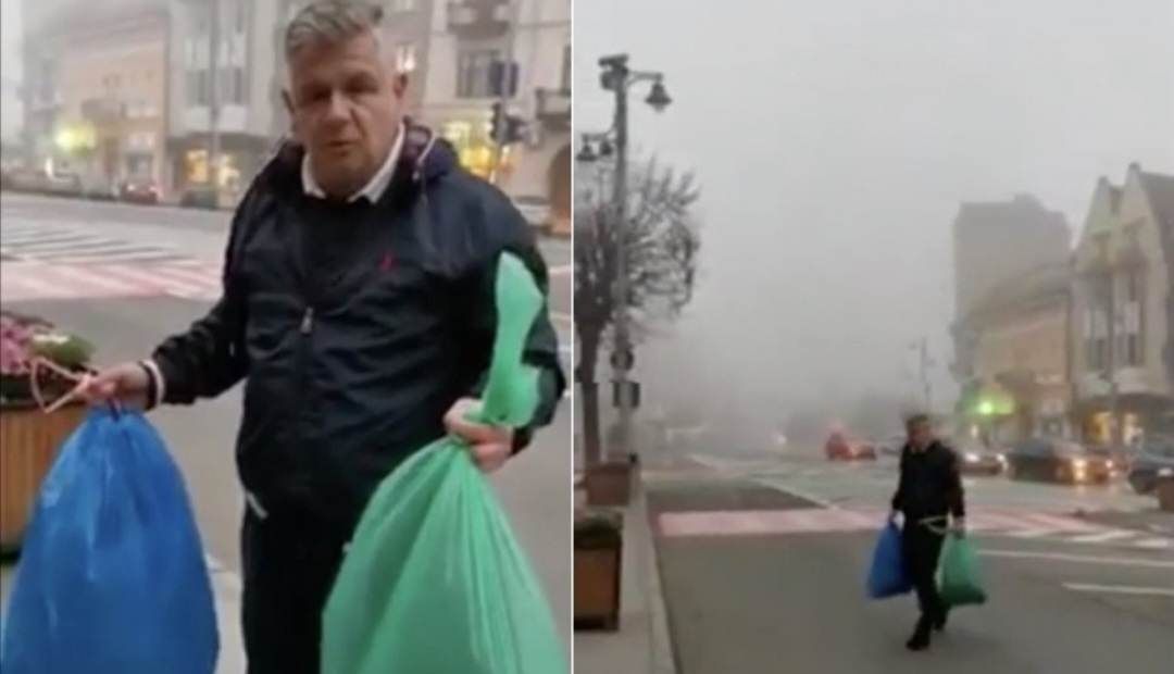 Protest inedit la Târgu Mureș! Un consilier local a adus saci cu gunoi pe treptele Primăriei: „Nu se mai poate aşa!”