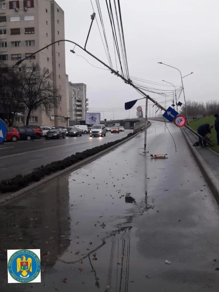 Stâlp luat de vânt în Satu Mare. Tabla de pe mall-ul Shopping City a fost distrusă