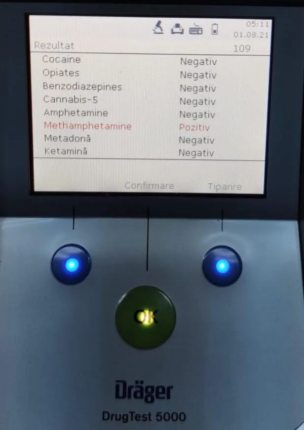 În urma testării cu aparatul Drug test 5000 a celor doi șoferi, au fost pozitivi în cazul substanței Methamphetamine, fiind ulterior conduși la spital pentru recoltarea de probe biologice.