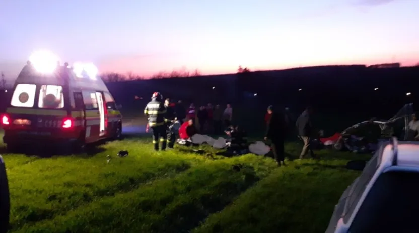 Impactul cu solul a fost extrem de violent. Echipele de intervenție au ajuns rapid la locul accidentului și au început manevrele de resuscitare pentru cele două victime.
