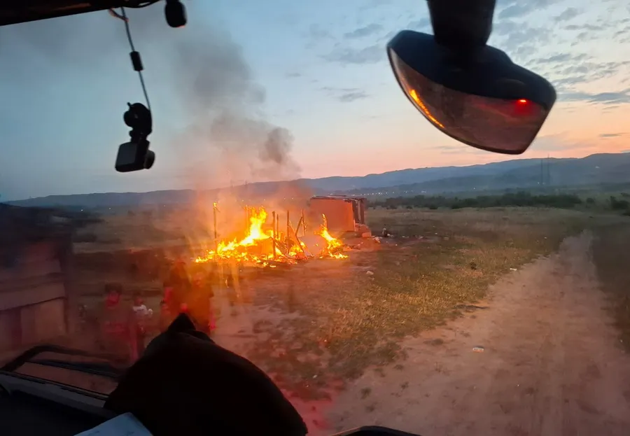 În momentul sosirii forțelor de intervenție, flăcările se manifestau violent la întreaga locuință din lemn, construită pe o suprafață de circa 10 metri pătrați și la anexa din lemn (de aproximativ aceeași dimensiune) lipită de aceasta.