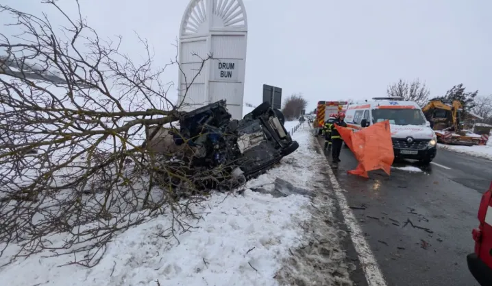 Un accident rutier deosebit de grav s-a produs joi, în jurul amiezii, pe DN1, la ieșirea din Miercurea Sibiului, la limita județelor Alba și Sibiu. Un bărbat în vârstă de aproximativ 50 de ani și-a pierdut viața după ce s-a răsturnat cu mașina în dreptul indicatorului de limită de județ.