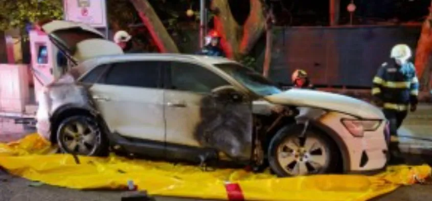 Un Audi electric a izbucnit în flăcări într-o stație de alimentare, azi noapte, pe un bulevard din Satul Mare. Incendiul s-a petrecut în timp ce mașina se afla la încărcat. A fost ținută sub imersie pentru 72 de ore, deoarece exista riscul ca flăcările să apară din nou.