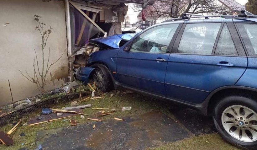 Un tânăr de 21 de ani a intrat cu mașina în casa unei familii. Proprietarii erau în locuință în momentul impactului - FOTO