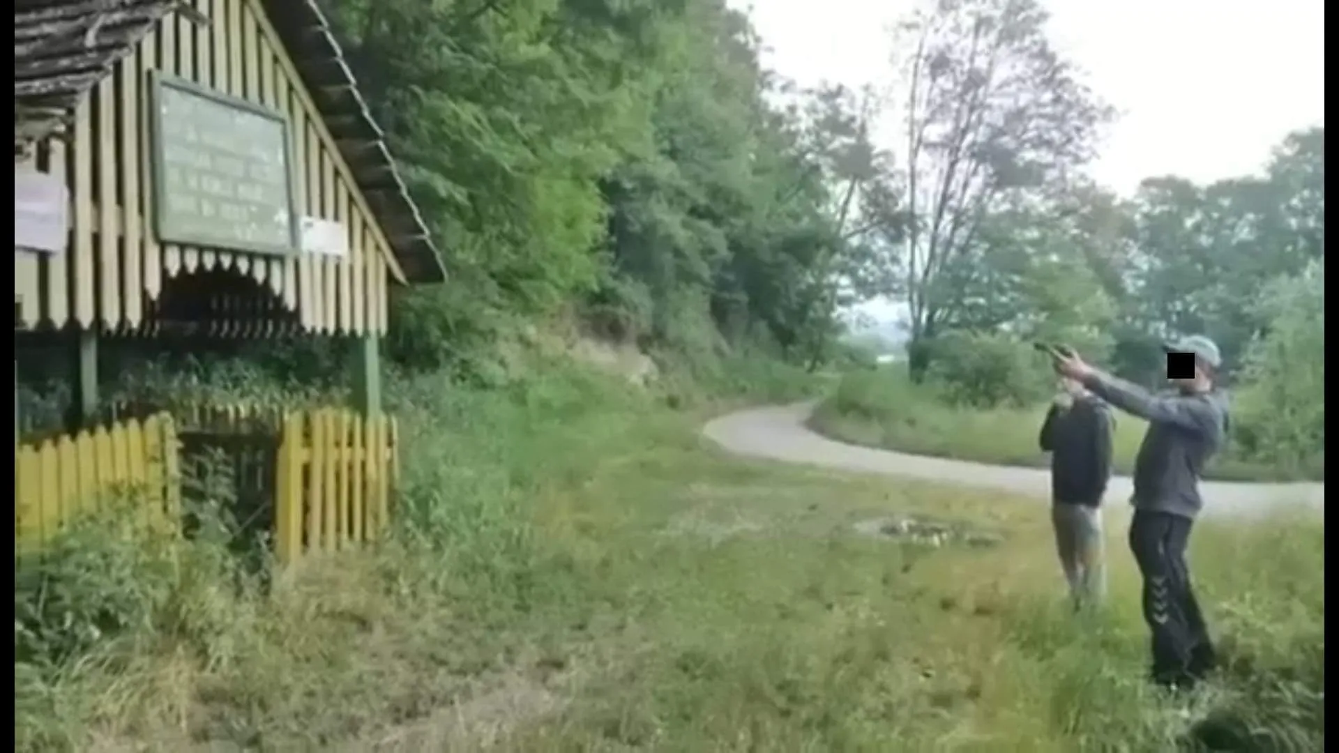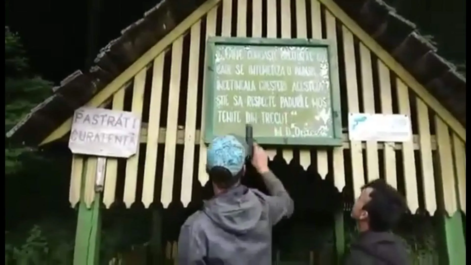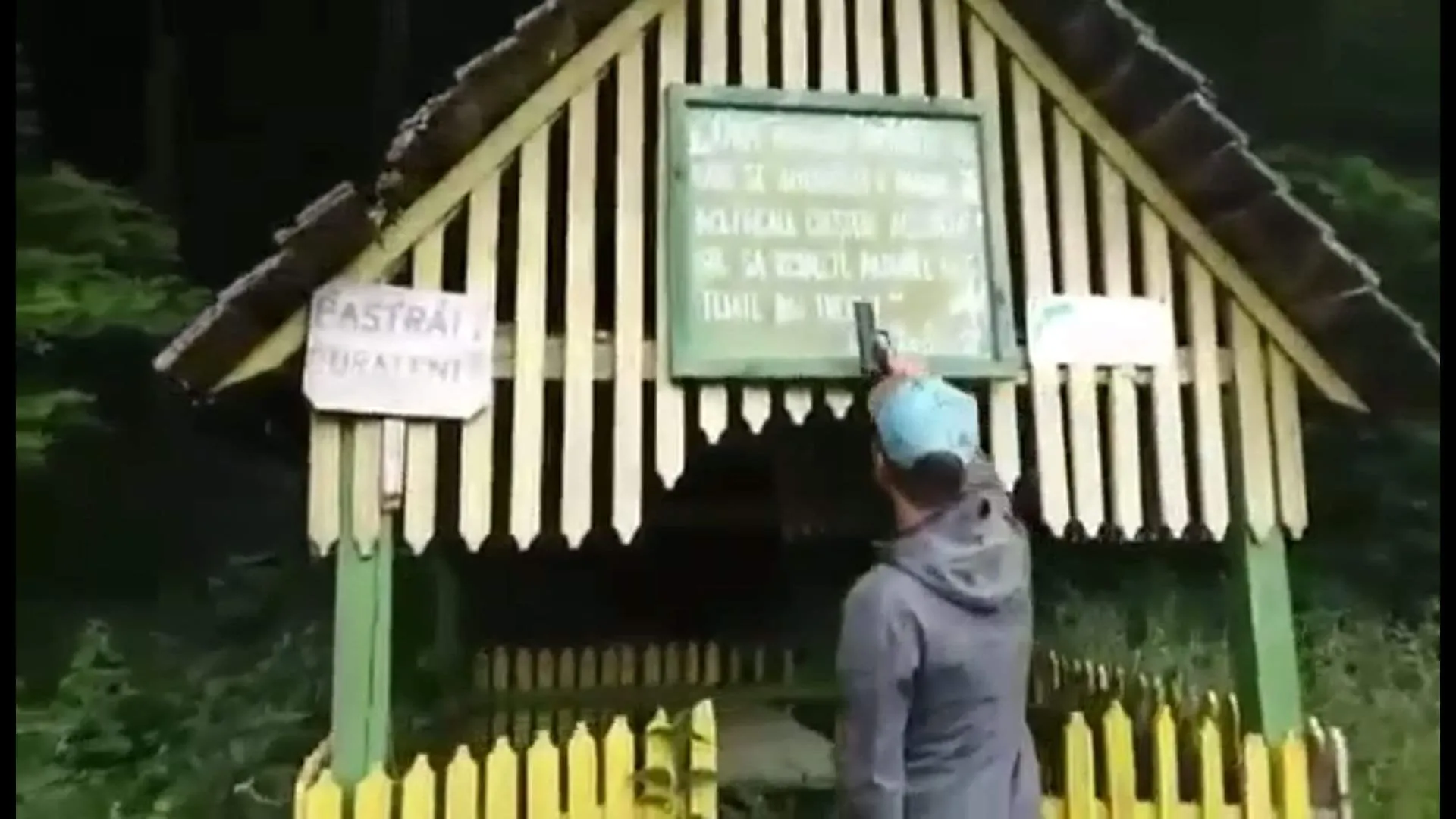 Un minor de 17 ani din Hunedoara s-a fotografiat în timp ce trăgea cu un pistol, într-un panou de la un popas rutier.