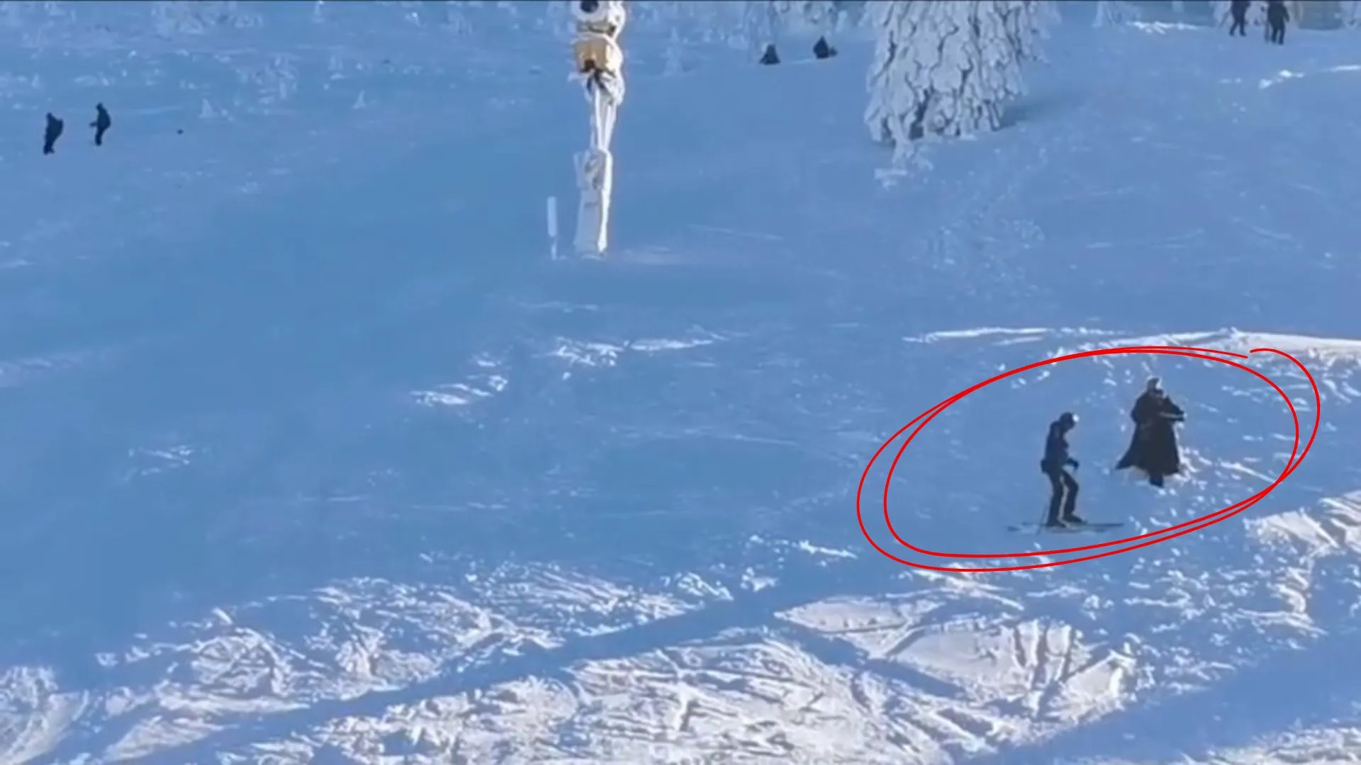 VIDEO. A „escortat-o” ca de pe catwalk: O femeie în...fustă a fost coborâtă de pe o pârtie de un jandarm montan. „Pârtia de schi nu este podium!”