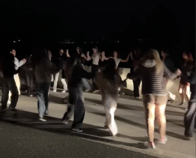Clipul a devenit viral pe rețelele sociale, adunând rapid sute de mii de vizualizări. Șoferii din jur, mai întâi surprinși, au început să aplaude și să filmeze, unii chiar alăturându-se horei, transformând autostrada într-un veritabil ring de dans.