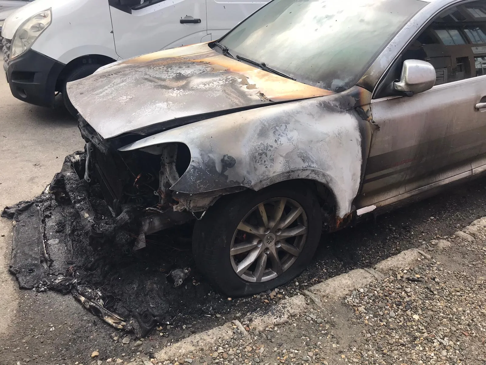 Un Porsche 4x4 a fost incendiat azi-noapte, în Beclean, în jurul orei 1.30, de un bărbat mascat. Acum două săptămâni, aceeași mașină a fost incendiată prima dată, dar focul a fost stins.