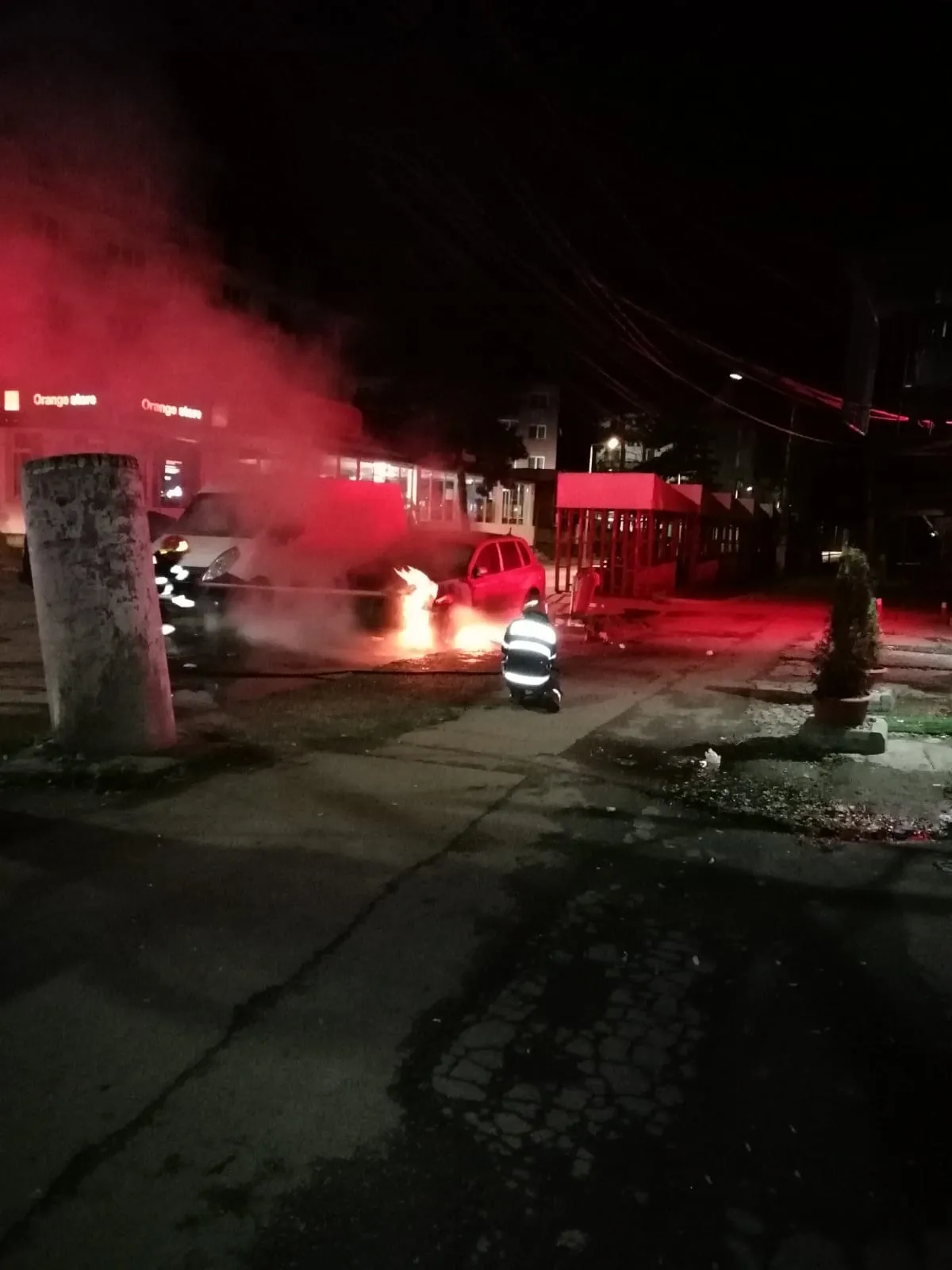 Din imagini se vede cum acesta a turnat benzină dintr-un recipient și apoi a dat foc mașinii. ”Acum a turnat benzină serios, nenorocitul. Pare a fi același după mers. Avea cagulă”, a comentat proprietarul mașinii.