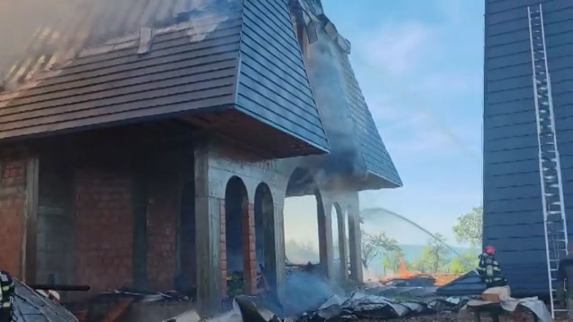 VIDEO. O biserică ridicată cu sacrificii timp de 12 ani, distrusă de flăcări în câteva ore: Localnicii au privit-o neputincioși cum ia foc