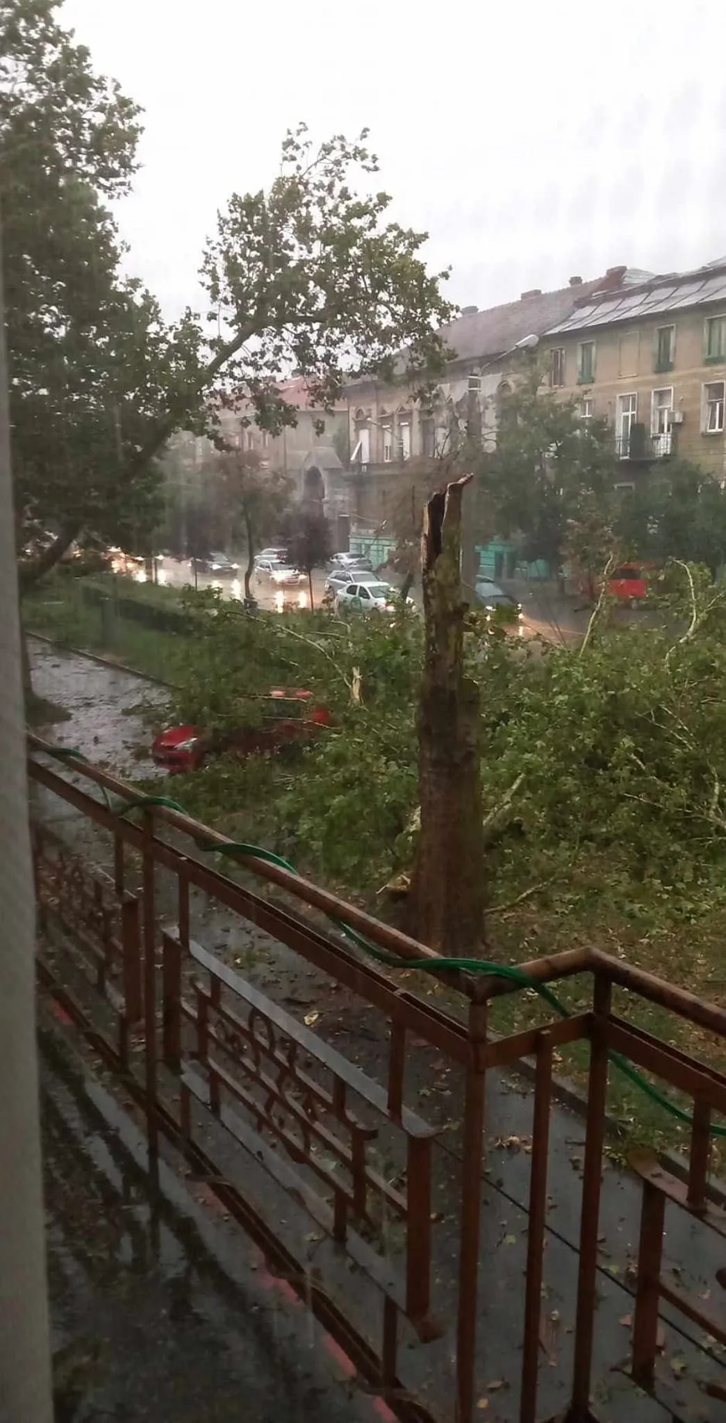 În multe zone din oraș, copacii au fost rupți de vântul extrem de puternic.