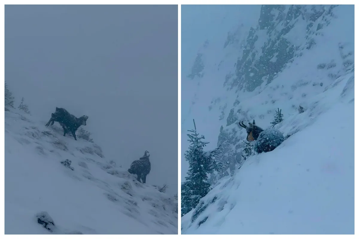 Capre negre surprinse pe creasta Pietrei Craiului în viscol puternic: „Temperatura resimțită era de -21 de grade”
