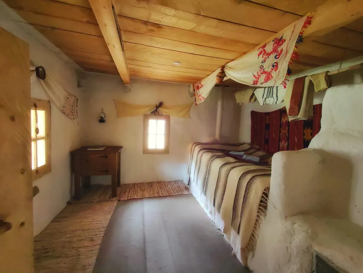 Casa este încălzită de o plită din argilă. Are 2 camere cu fiecare un pat și un aragaz. Dacă rezervi pentru 2 persoane, vei dormi într-o singură cameră. Paturile sunt mici, dar le urăm bun venit oamenilor să doarmă îndeaproape, ca în vremurile trecute”, spune Gabriel.
