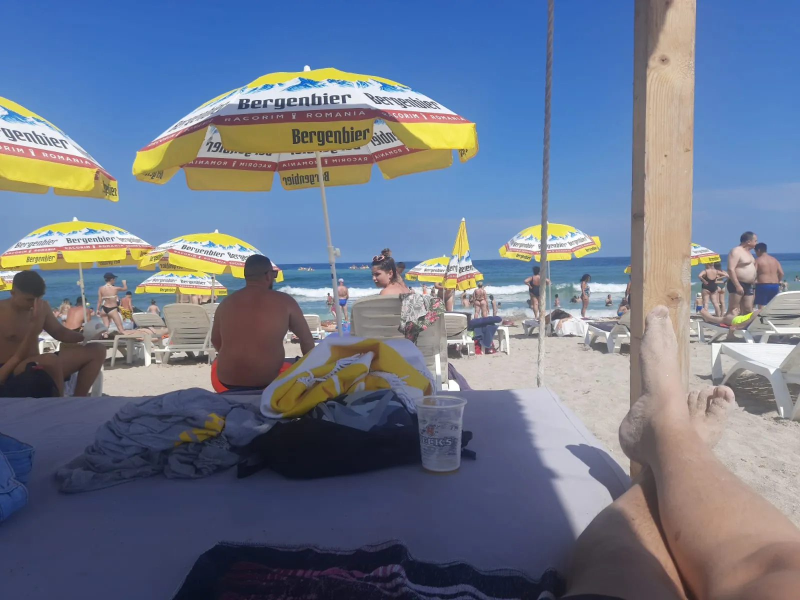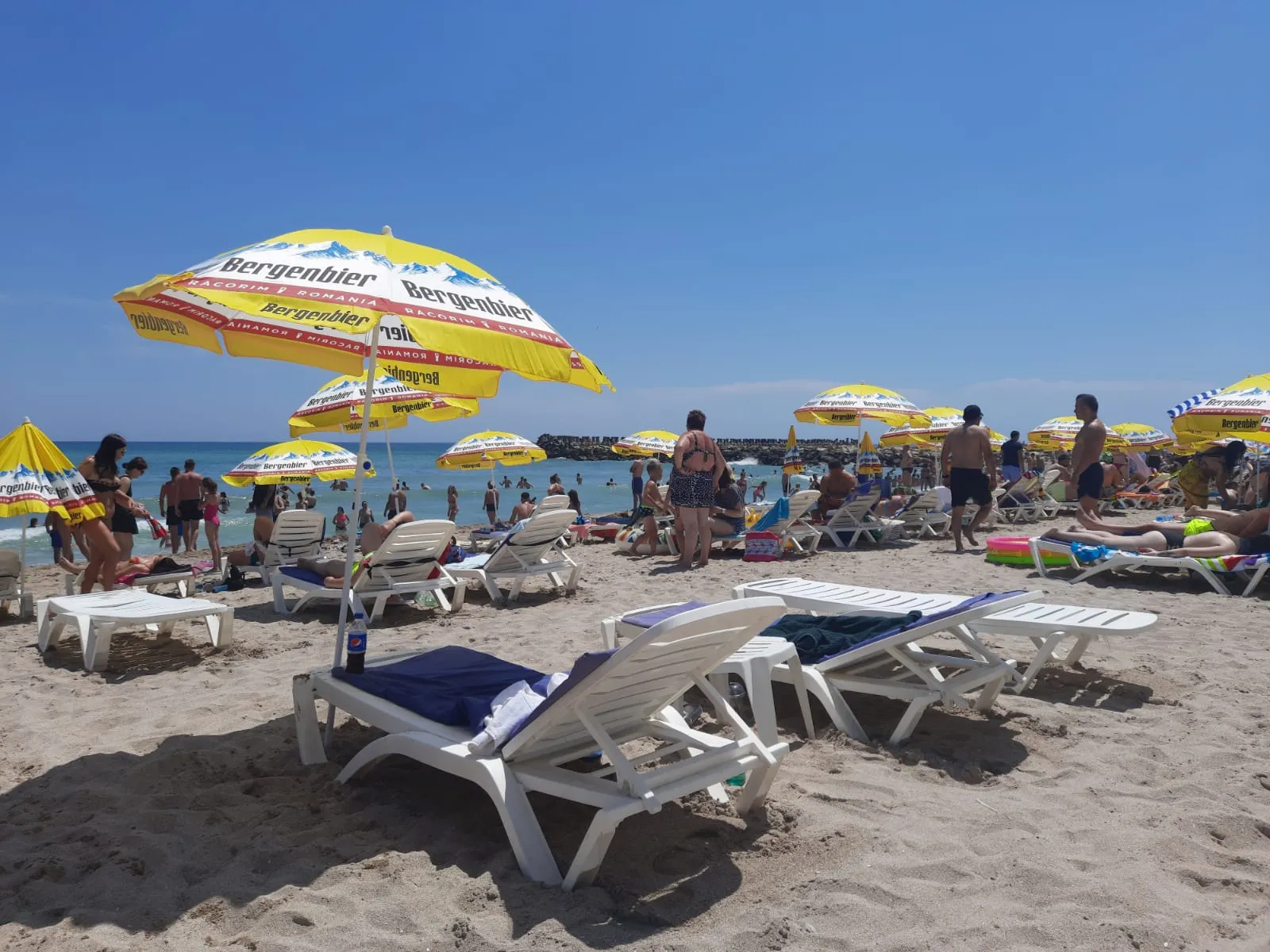 O bere pe plajă costă 5 lei, un șezlong 30 de lei, iar un baldachin 250 de lei.