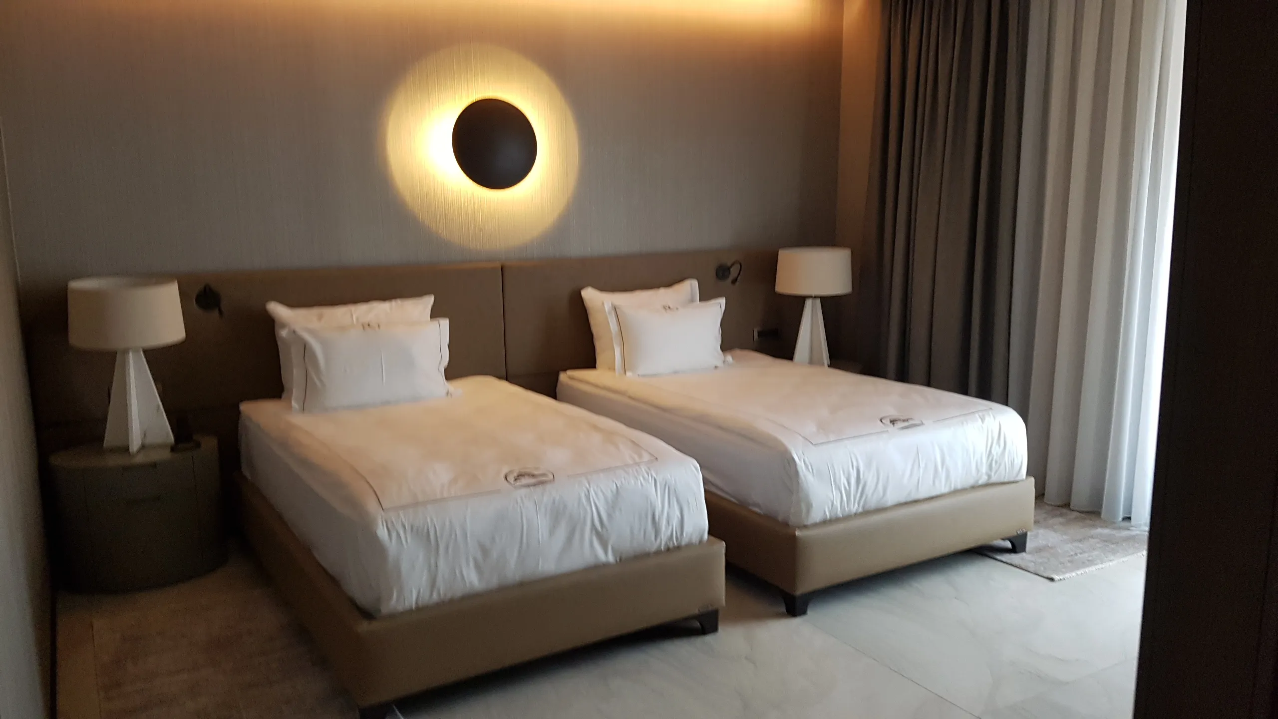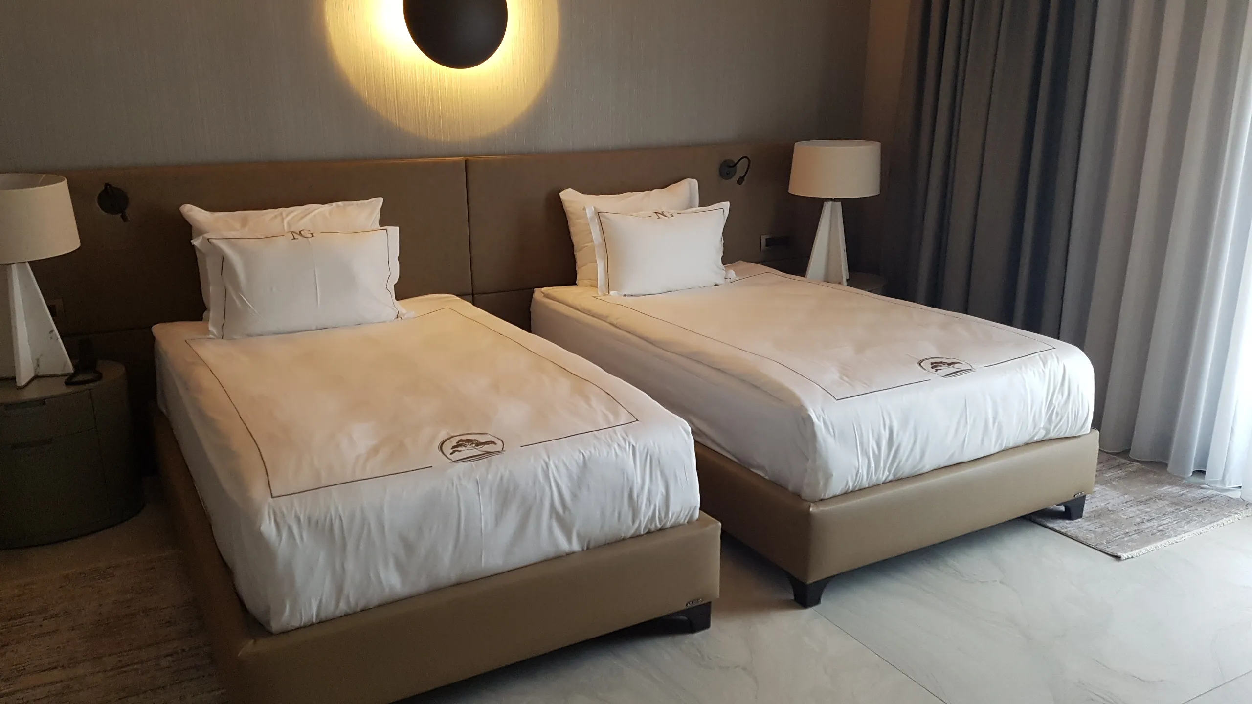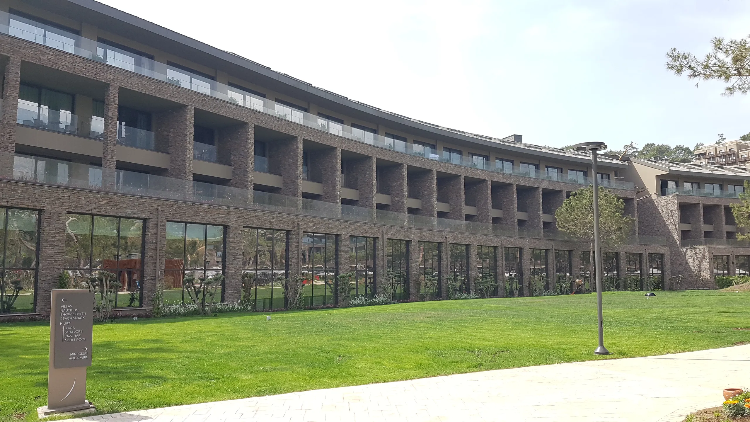 Camerele sunt spațioase, chiar mai mari ca la alte hoteluri de cinci stele. Totul este pus la punct. Pereții sunt placați cu bucăți mari de ceramică, de circa 1,2 mp, fiind o adevărată plăcere și încântare. Stilul este unul minimalist, la modă acum în Europa, de unde hotelul vrea să aducă cei mai mulți clienți. ”Sunt 480 de camere de hotel. În plus sunt și 7 vile de lux, cu piscină, unde turiștii sunt tratați special, cu servire 24 din 24. S-a investit suma de 500 de milioane de euro, iar suprafața complexului este de 70.000 de mp. Investiția s-a făcut de către un grup foarte mare din Turcia, care produce ceramică”, ne-a transmis managerul hotelului.