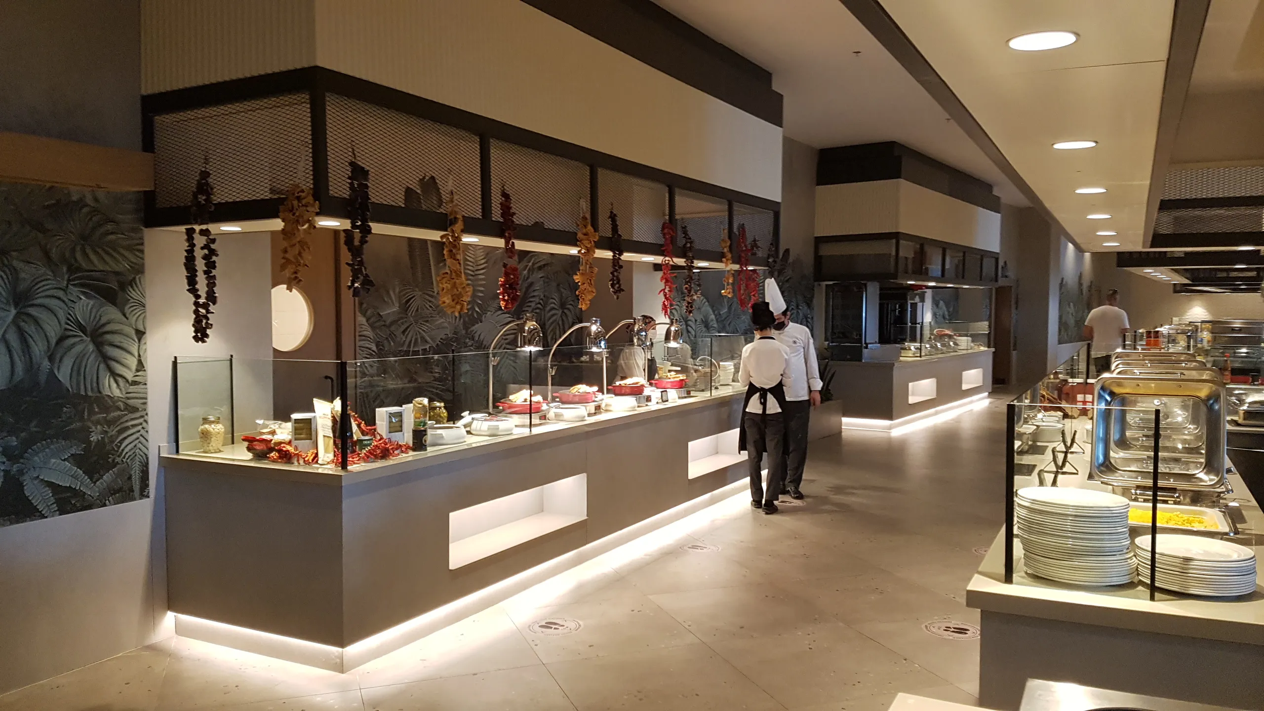 Spre exemplu unul dintre aceste restaurante este un fel de burger house, unde se poate mânca un hamburger foarte bun și se poate bea bere. Sunt 6 restaurante A la carte, plus restaurantul mare”, a mai adăugat reprezentantul Agenției. Ce-i drept am și testat un astfel de restaurant, iar senzația a fost una de local de cinci stele. Friptura de vită a fost extrem de bună, iar servirea pe măsură, așa că vă invit să le testați, dacă ajungeți la acest hotel.