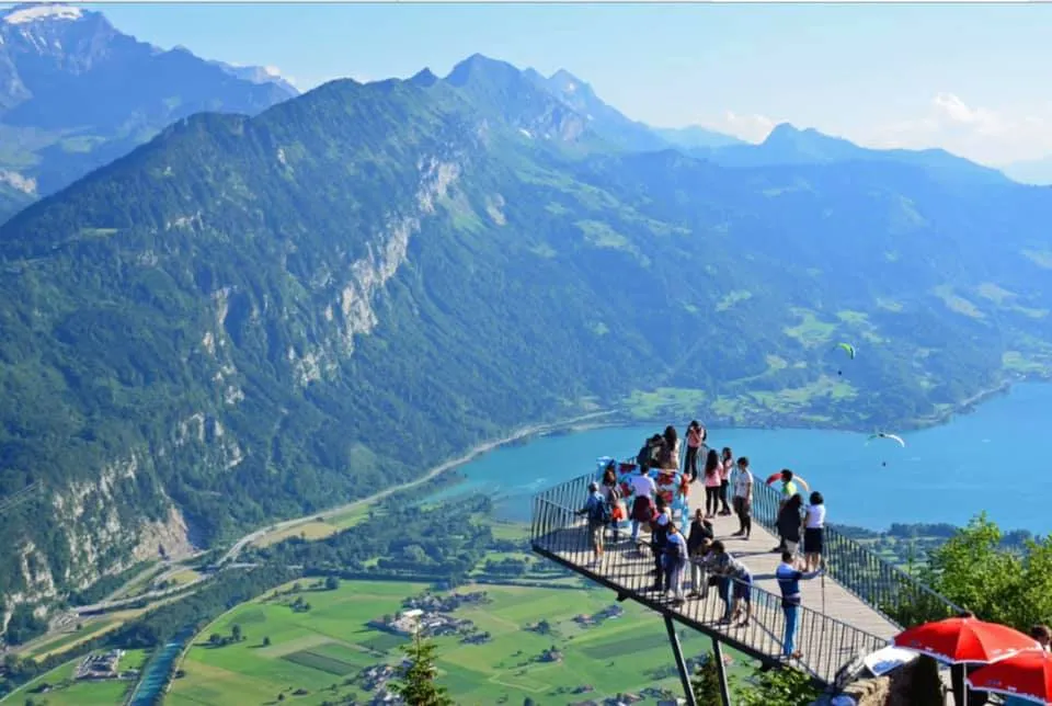 La Interlaken, un oraș din cantonul Berna din Elveția și o super destinație turistică în apropiere de Alpi, călătorii pot urca cu un funicular până la aproape 1400 de metri. Acolo îi așteaptă o platformă cu o priveliște absolut superbă cu lacurile Brienz și Thun.