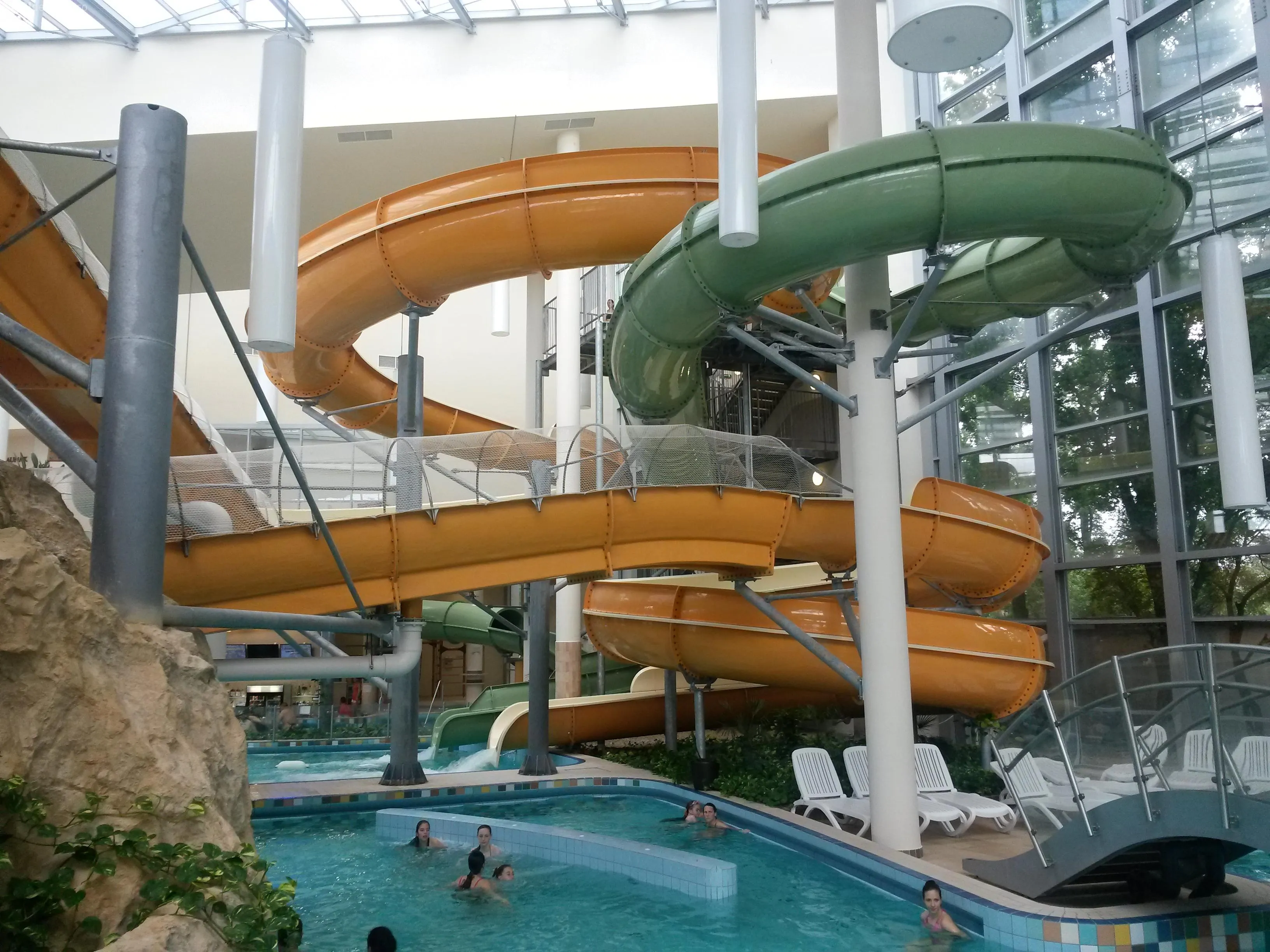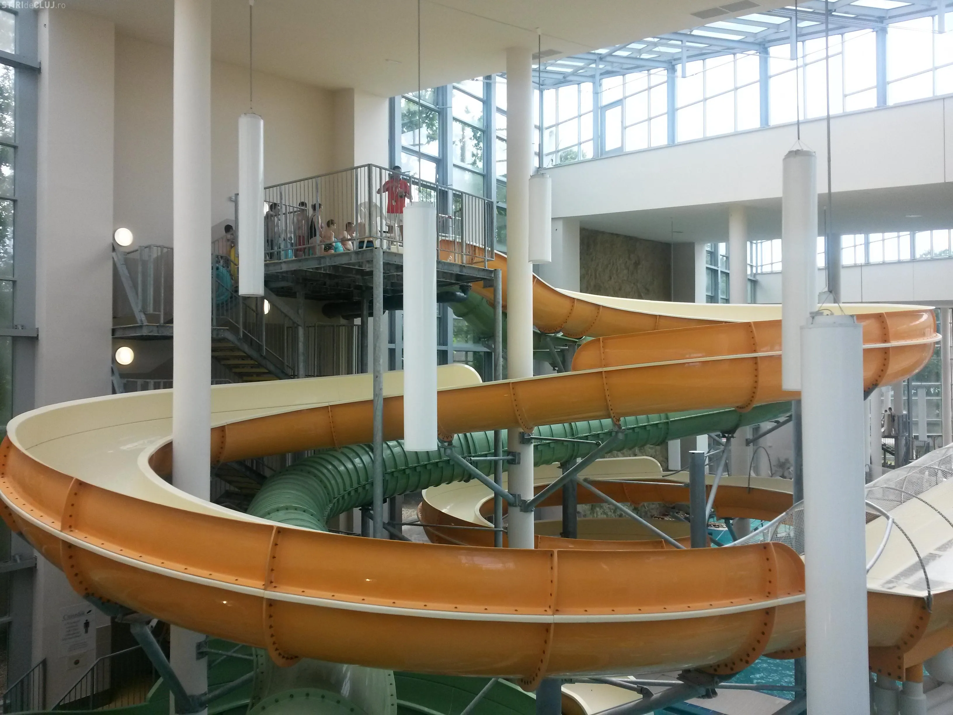 Eu am ajuns la bazin pentru circa două ore vineri, după ce ne-am cazat la hotel și am făcut cunoștință cu gazdele. Timpul a fost presa scurt, așa că numai sâmbătă mi-am putut face o ideea despre tot ștrandul. Mi-au plăcut foarte mult saunele, mai ales cea finlandeză, dar pe care o recomand numai celor curajoși. După 10 minute la 90 de grade e dificil să intri direct în bazinul cu apă rece ca gheața. Tot aici, utilizatorii puteau folosi și gheață după ședința de saună. De remarcat și personalul, extrem de amabil, unii dintre ei fiind și vorbitori de limba română.