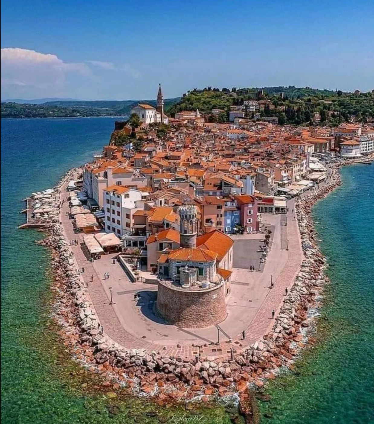 Pe măsură ce te apropii de Piran, peisajul deluros ascunde inițial frumusețea orașului. Dar odată ce cobori spre coastă și îți parchezi mașina, panorama te va lăsa fără respirație. Orașul vechi se întinde ca un labirint de străduțe și clădiri colorate, toate conducând spre marea albastră și plajele sale fermecătoare.
