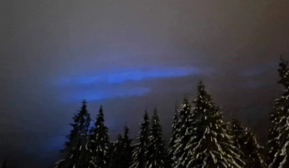 Un fenomen uluitor a fost surprins pe cerul stațiunii Vârtop din județul Bihor. Imaginile cu aurora boreală albastră îți taie respirația.
