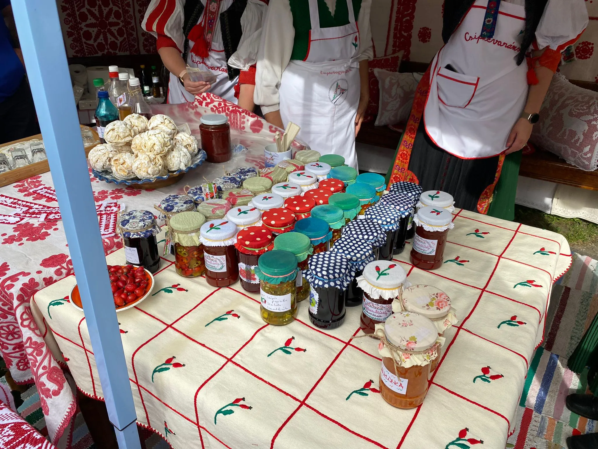 Desigur nu au lipsit nici bunătățile locale: siropuri, gulaș unguresc, sarmale, mici, telemea, caș, miere, gemuri, plăcinte, dulciuri și prăjituri.