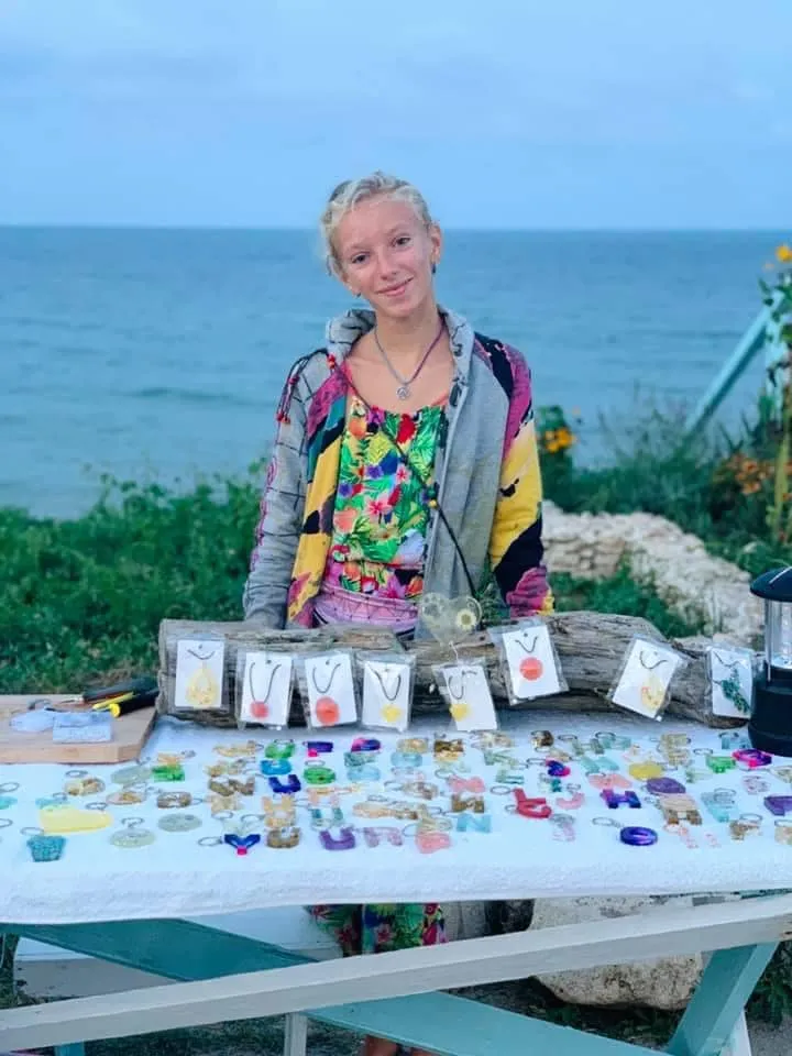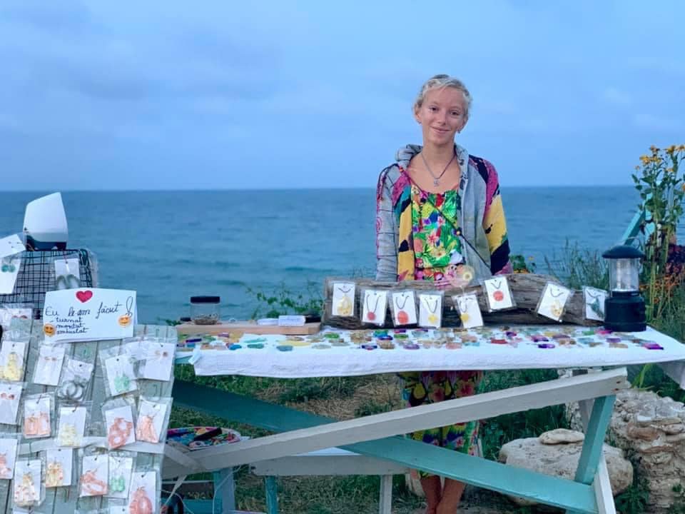 ”Pe faleza din Vama Veche, spre bulgari, mult după ce se termină barurile, stă în fiecare seara Tiara, o fetiță de 11 ani care își vinde accesoriile făcute cu mâna ei.