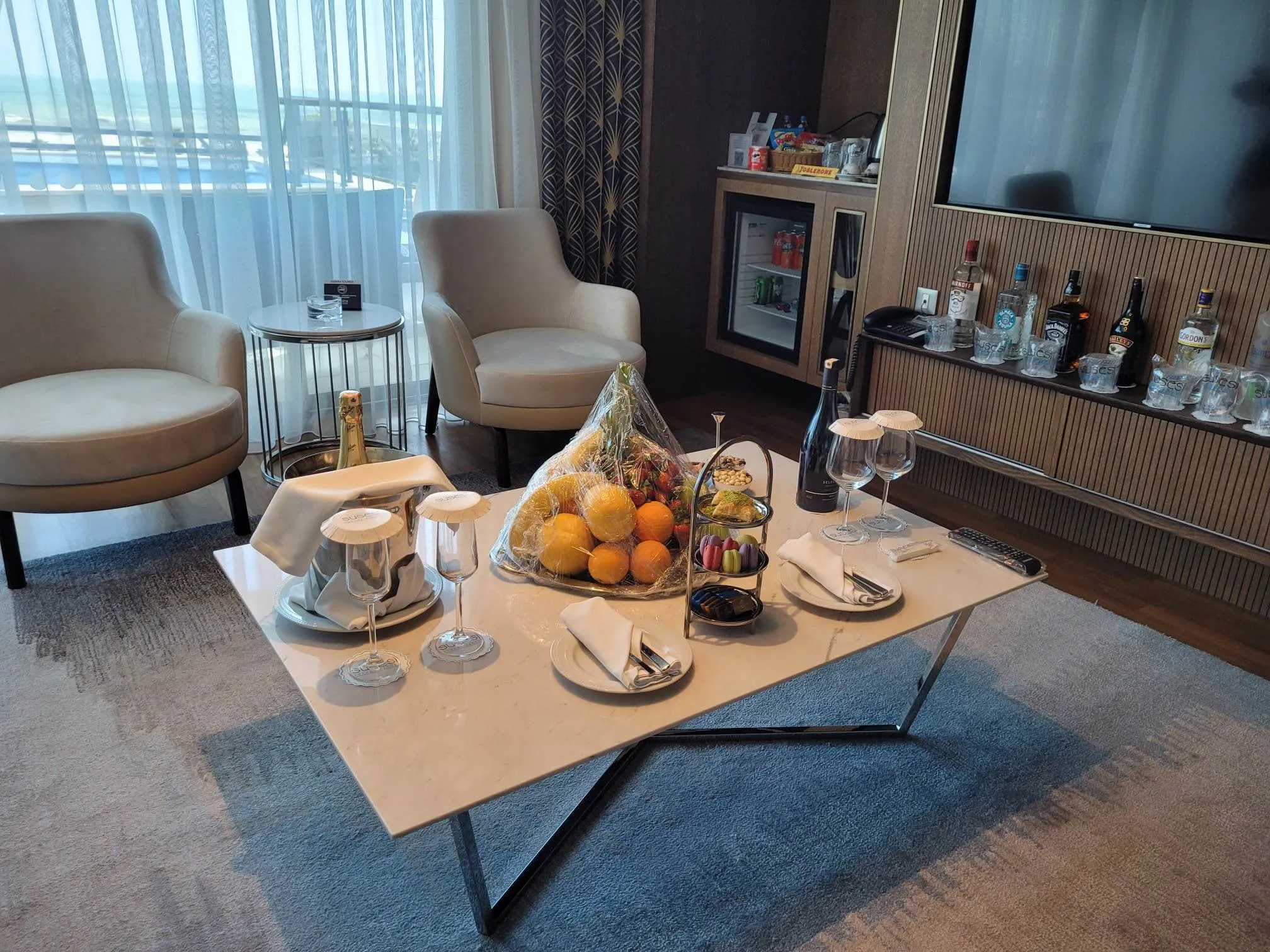 Odată ajunși la hotel, veți fi întâmpinați de personalul amabil și veți fi dus direct la camera dumneavoastră. Vorbim despre o cameră elegantă și confortabilă, cu o vedere uimitoare spre mare. Toate camerele spațioase de la Susesi Luxury Resort sunt dotate cu televizoare cu ecran plat, iar unele suite au o piscină pe terasa privată, un balcon protejat de vânt și o cadă cu hidromasaj.