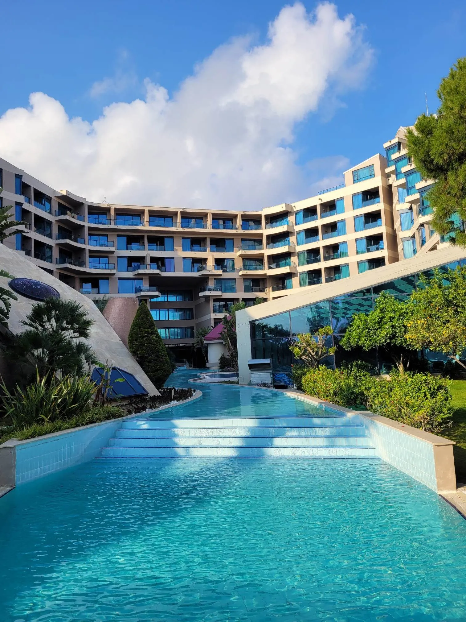 Clădirile terasate ale acestui complex de lux din Belek sunt înconjurate de piscine vaste, palmieri înalţi şi grădini pline de verdeaţă. În incinta resortului găsești tot de ce ai nevoie: restaurante, terenuri de sport, piscine, locuri de joacă pentru copii. Însă, merită toată atenția turiștilor clujeni și alte resorturi din Antalya pe care le-am vizitat: Nirvana, Spice, Güral. Despre acestea vă vom relata zilele următoare. Acum însă, vreau să vă povestesc mai multe despre cum arată o vacanță de vis la Susesi Luxury Resort. Din limba turcă „susesi” se traduce ca „sunetul apei”, o alegere deloc întâmplătoare, căci turiștii care ajung la destinația de lux se vor bucura de una dintre cele mai relaxante experiențe, vor auzi mereu susurul apei curgătoare care se „plimbă” agale prin grădinile hotelului.