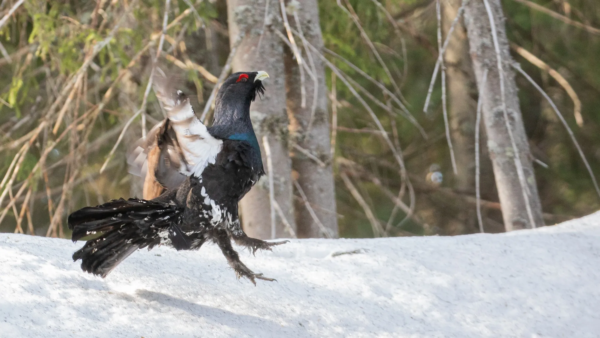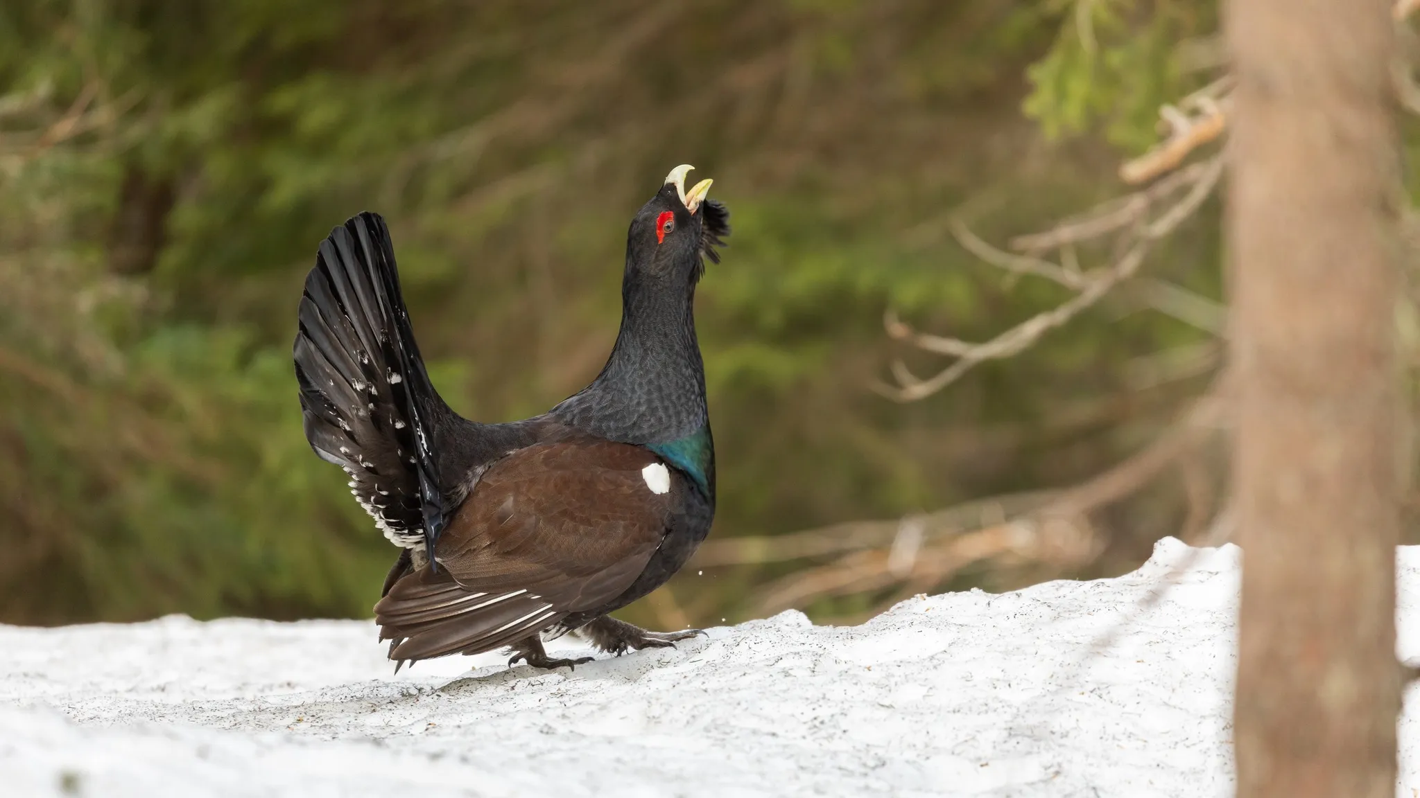 FOTO. Imagini SPECTACULOASE din Parcul Natural Apuseni: Fotografii rare de la ritualul de împerechere al cocoșului de munte
