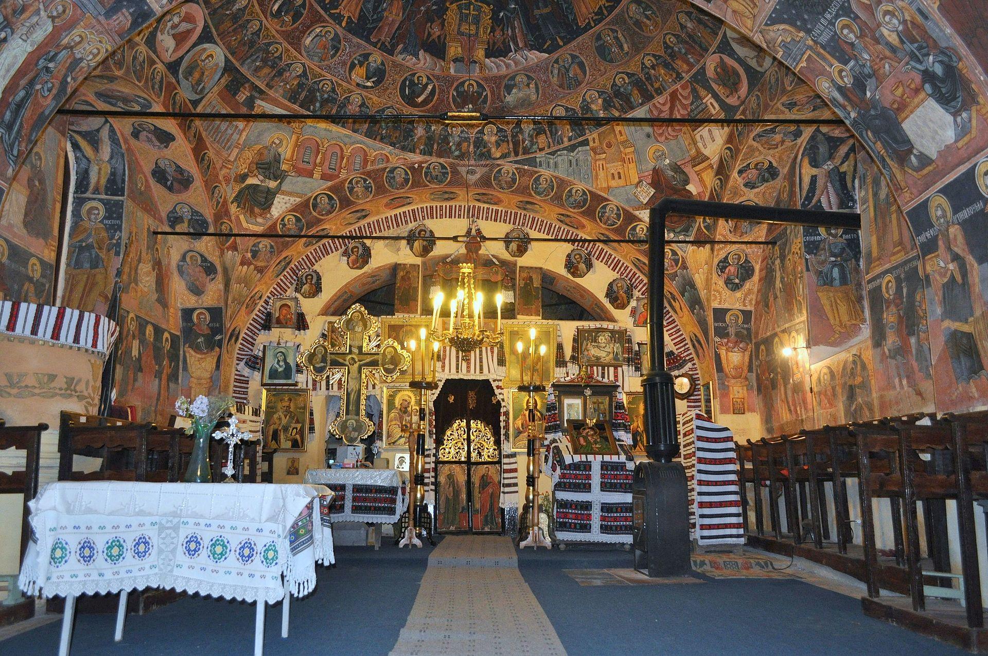 În interior biserica este pictată în întregime de pictorii din familia Grecu din Săsăuș. Ansamblul mural cuprinde imagini biblice, care adesea sunt tratate ca scene din viața cotidiană a epocii în care au trăit și activat autorii. Astfel apar costume de epocă, ori imagini ce ne amintesc ambianța transilvăneană de la sfârșitul secolului al XVIII-lea.