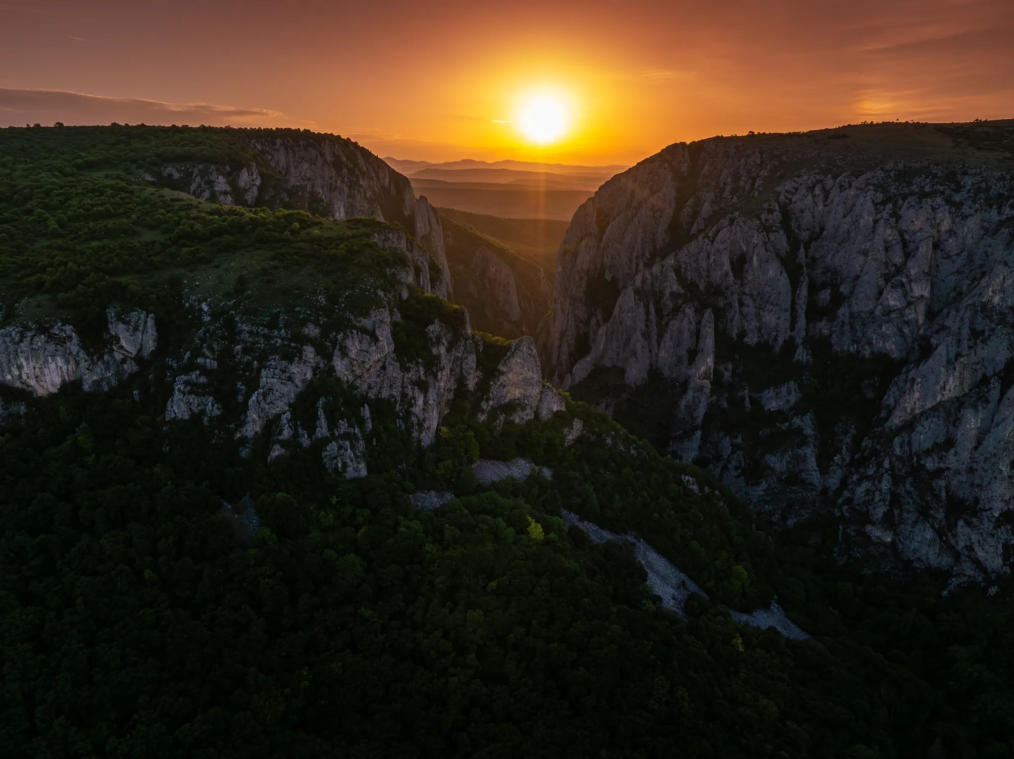 Fotograful a fost martorul unui asfințit de poveste în Cheile Turzii, moment pe care l-a imortalizat în mai multe fotografii realizate cu o dronă.