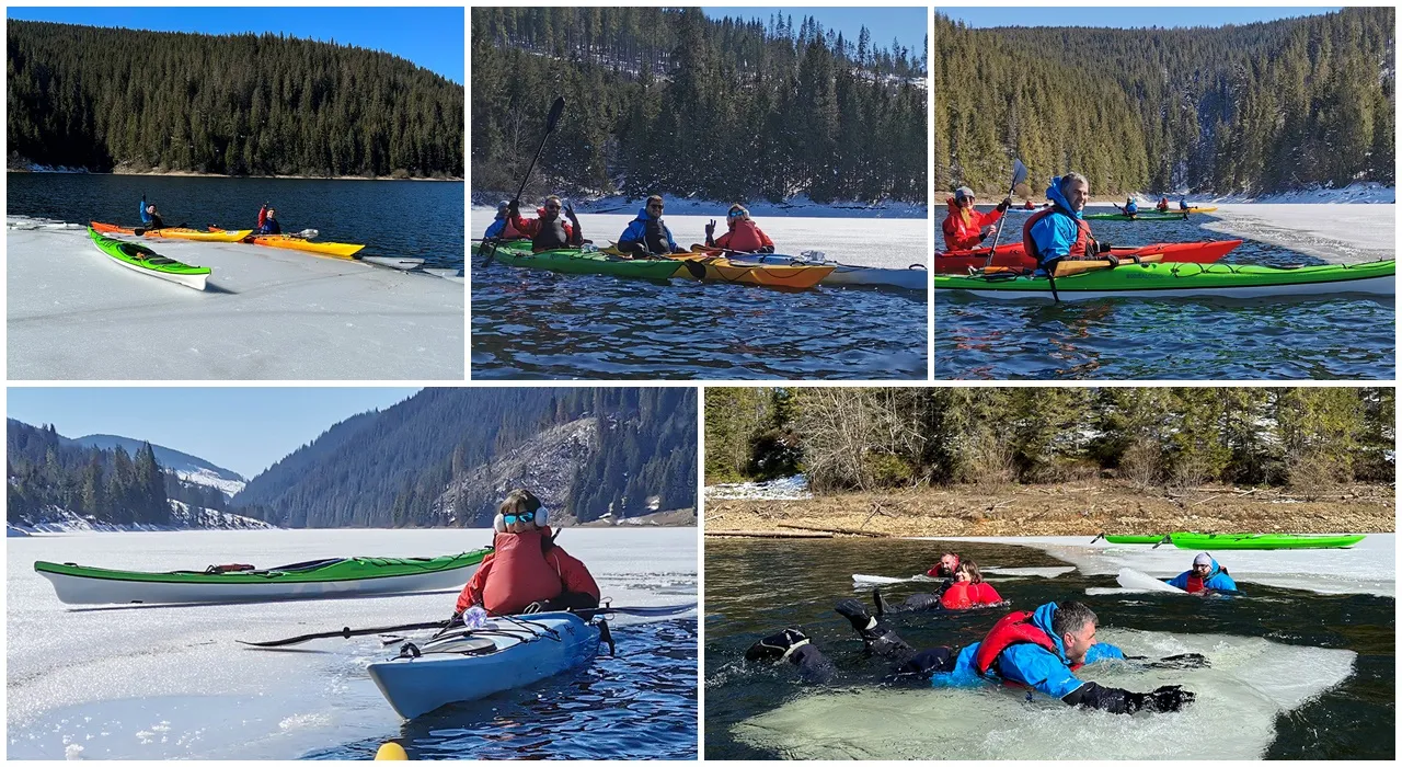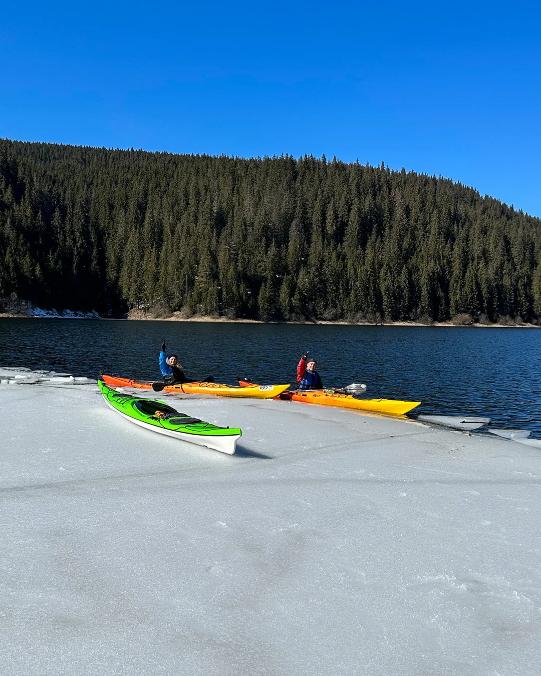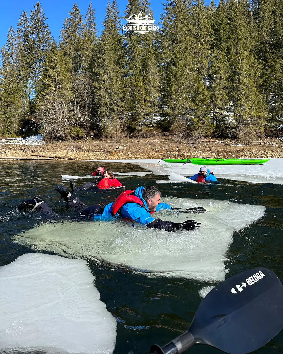 Imagini superbe de pe lacul Beliș, încă înghețat! Excursii cu caiacul pe lac și baie în lacul de ”gheață” - FOTO