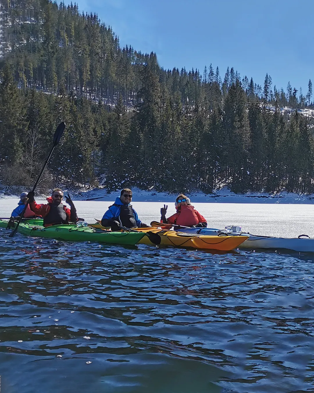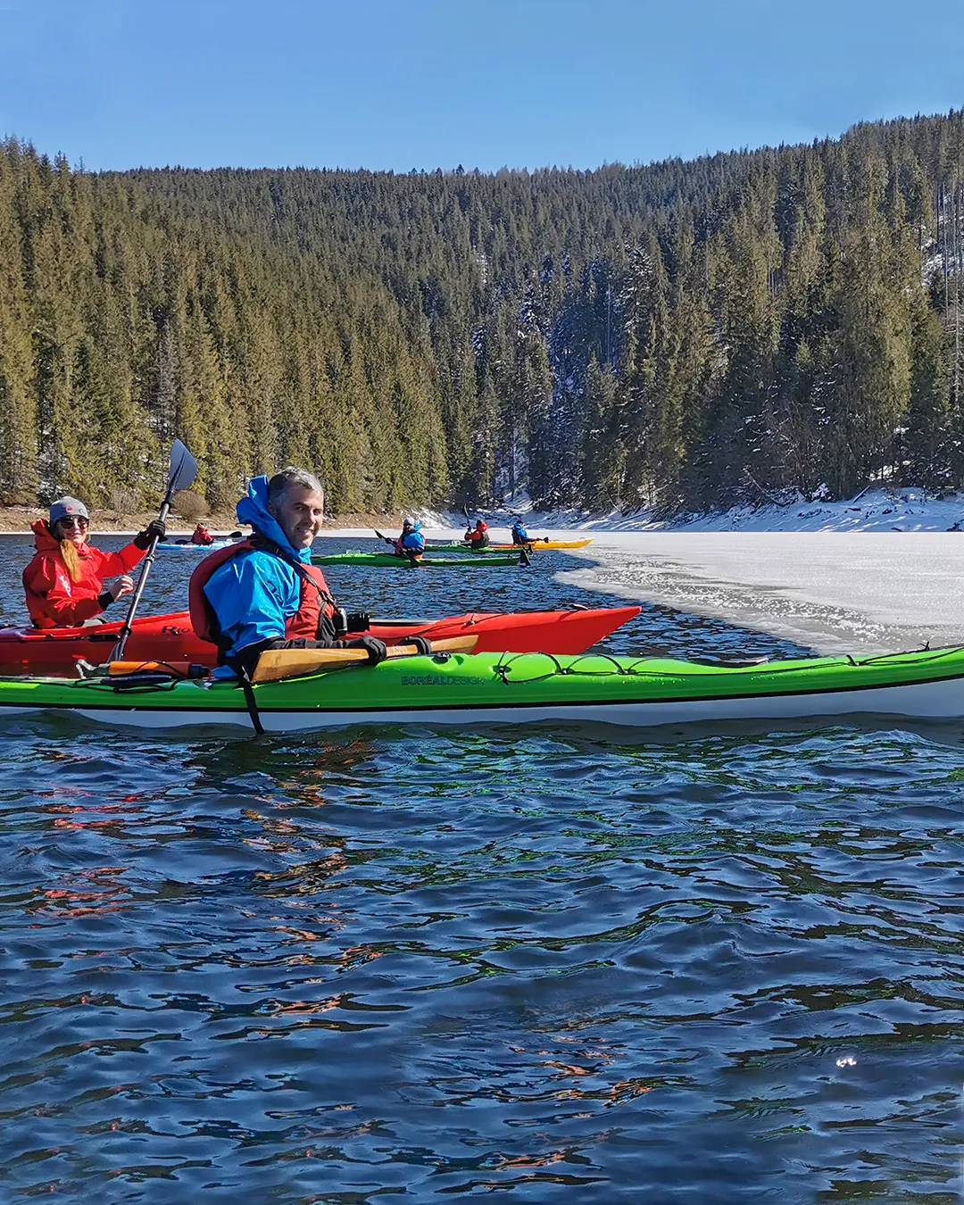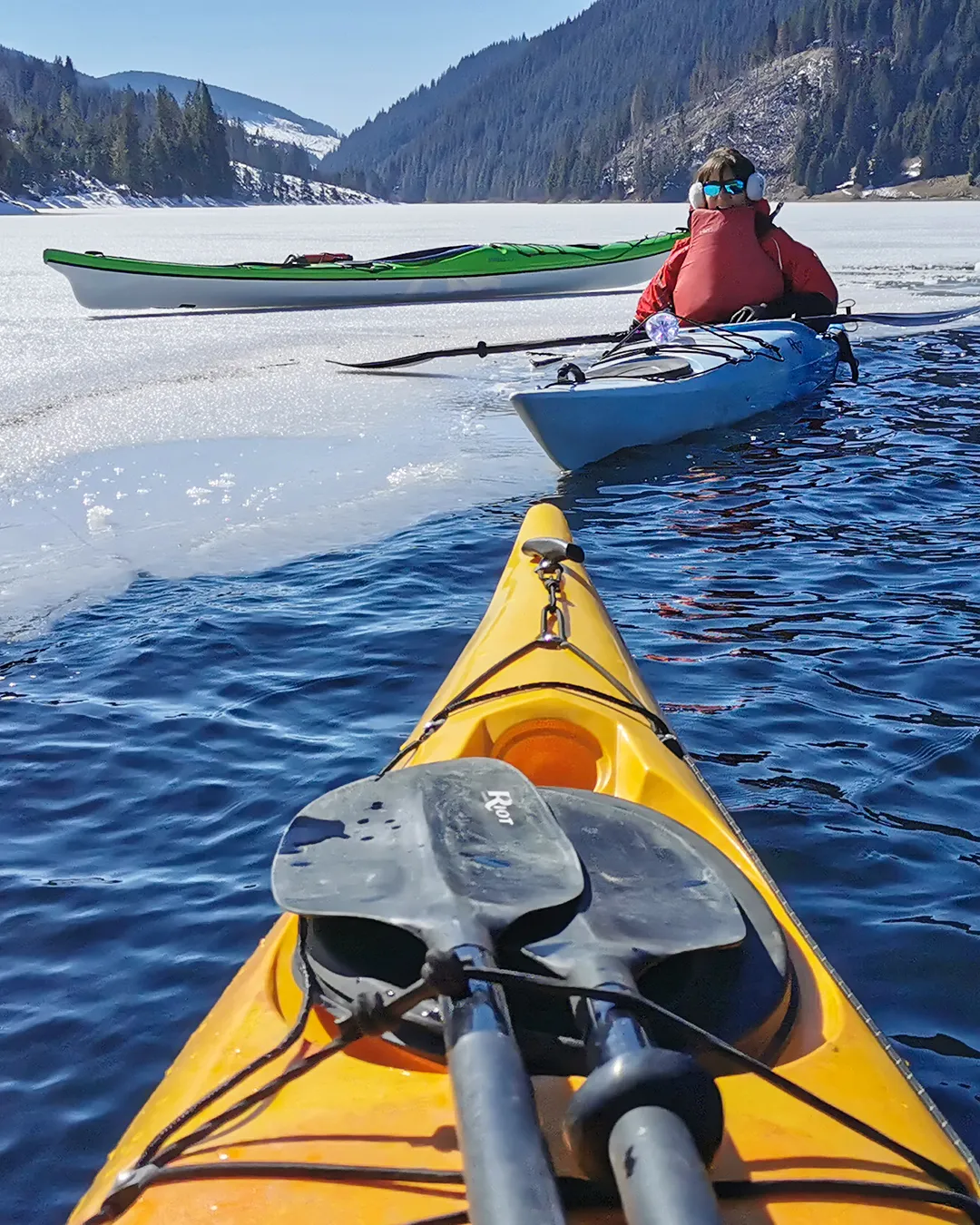 Imagini superbe de pe lacul Beliș, încă înghețat! Excursii cu caiacul pe lac și baie în lacul de ”gheață” - FOTO