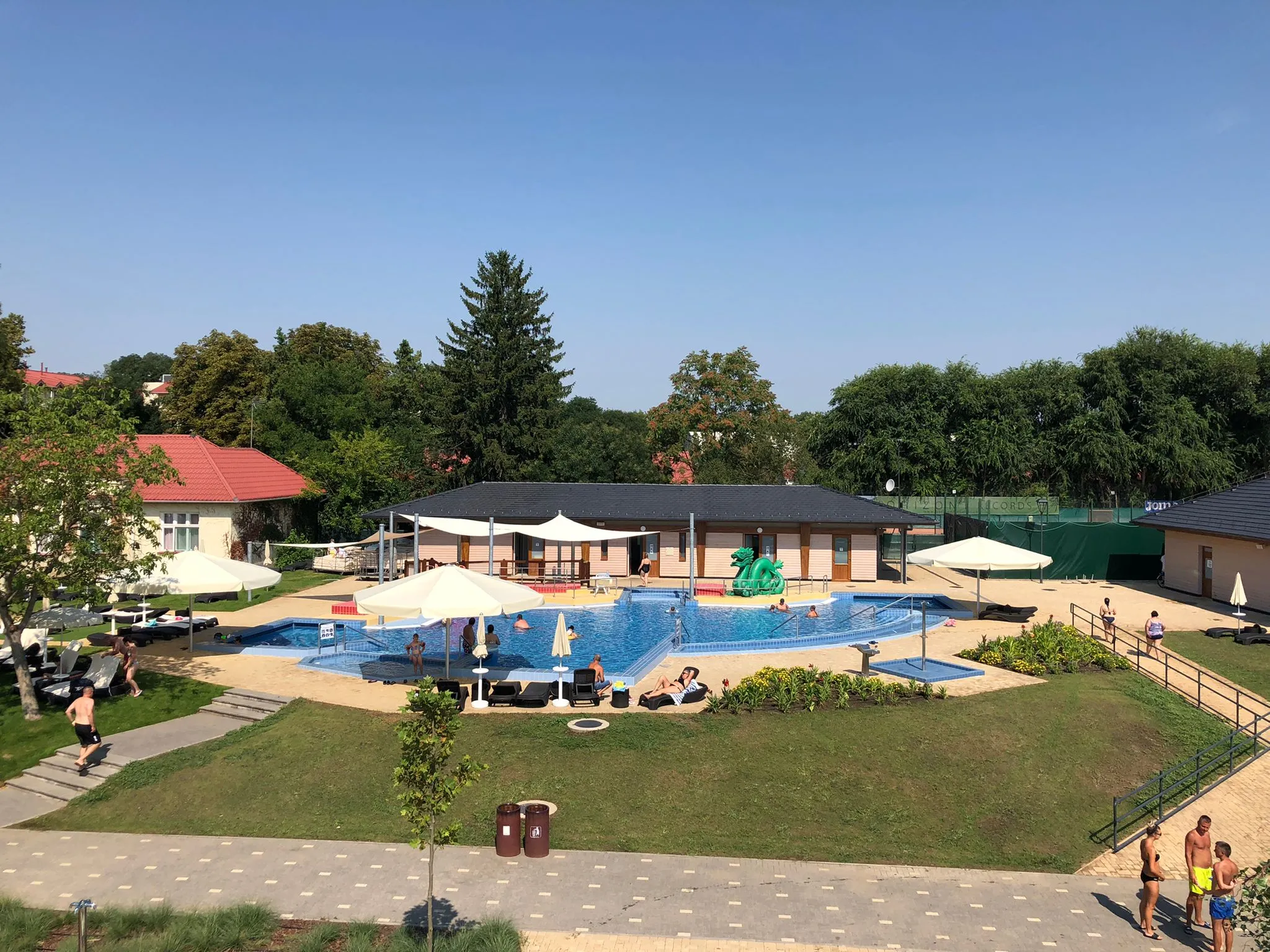 Complexul balnear se întinde pe o suprafata de 30 de hectare și include zone de agrement cu piscine de diferite mărimi, zone cu tobogane, dar și spații de tratament cu apa termală. E ideal pentru tineri dornici de aventuri în apa, dar și pentru familii cu copii. Anul acesta, în iunie, s-a deschis Premium Zona, un spațiu nou, cu sezlonguri și saltele, exclusivist, de 2,5 hectare, în care s-a investit peste 10 milioane de euro (3,5 miliarde forinti).