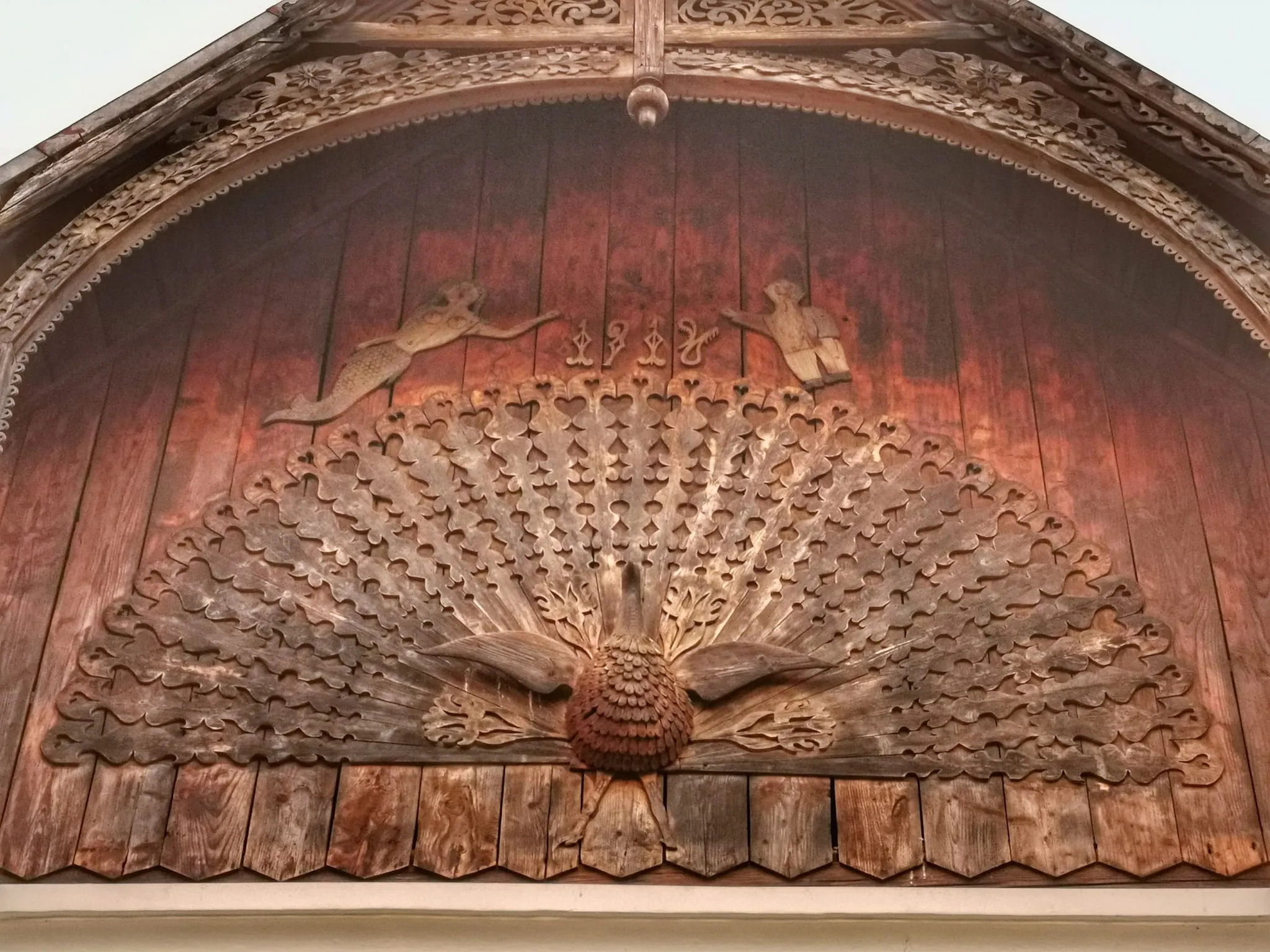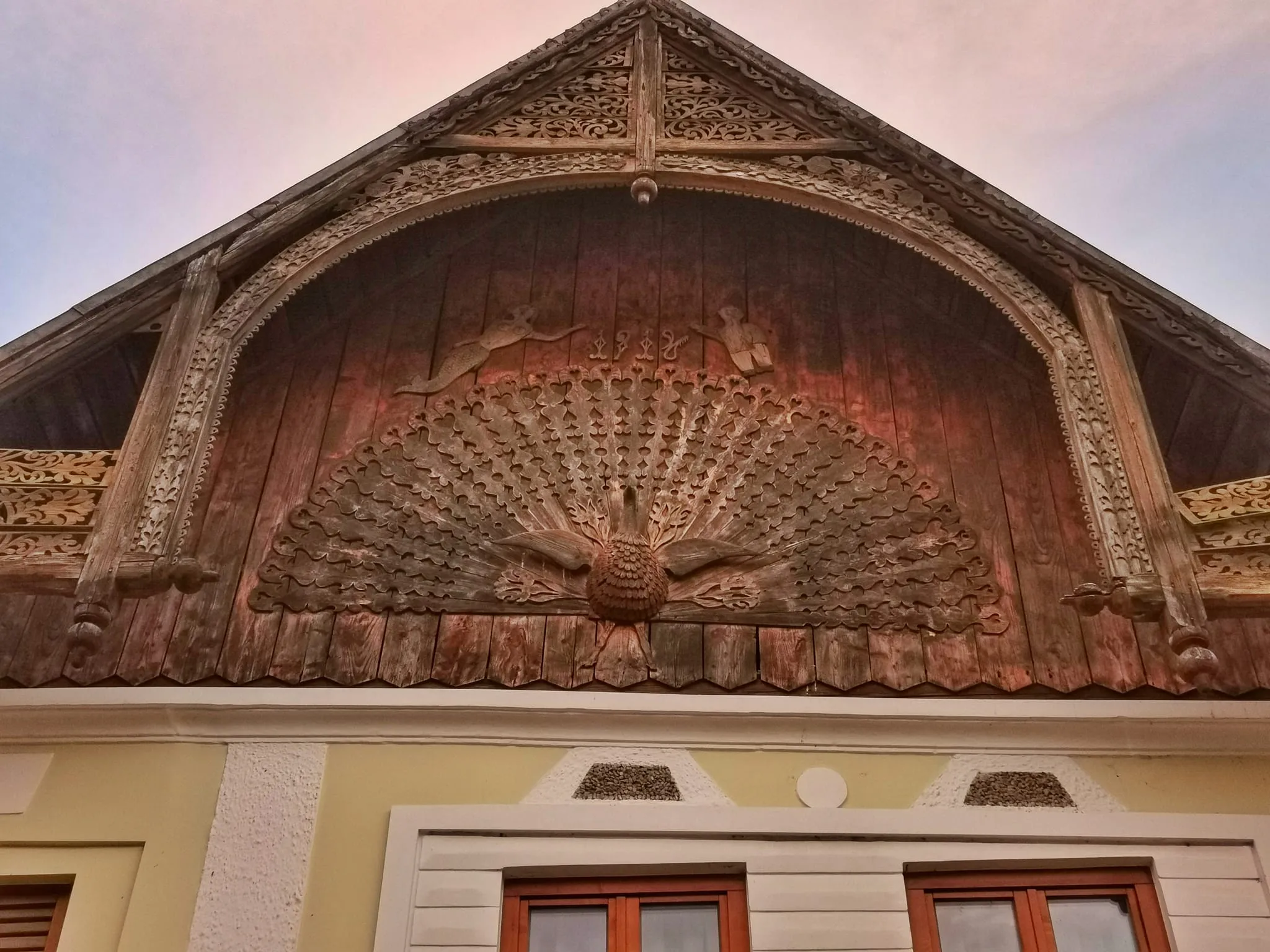Sculptarea unui păun pe acoperiș se crede că asigură învăluirea casei în vibrații benefice și protejează de dezastre, trădări sau accidente.