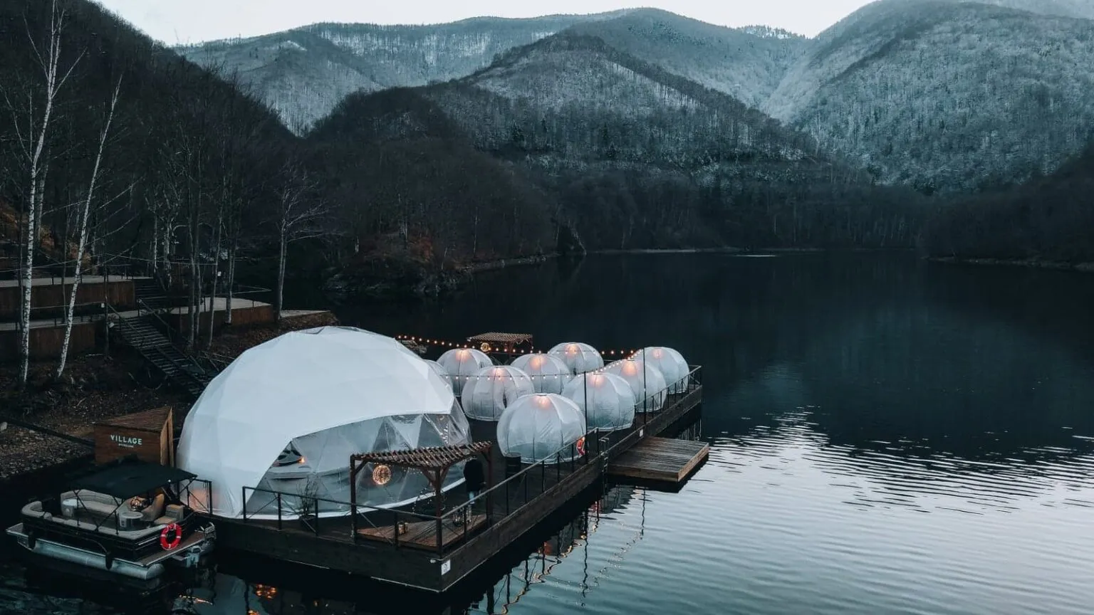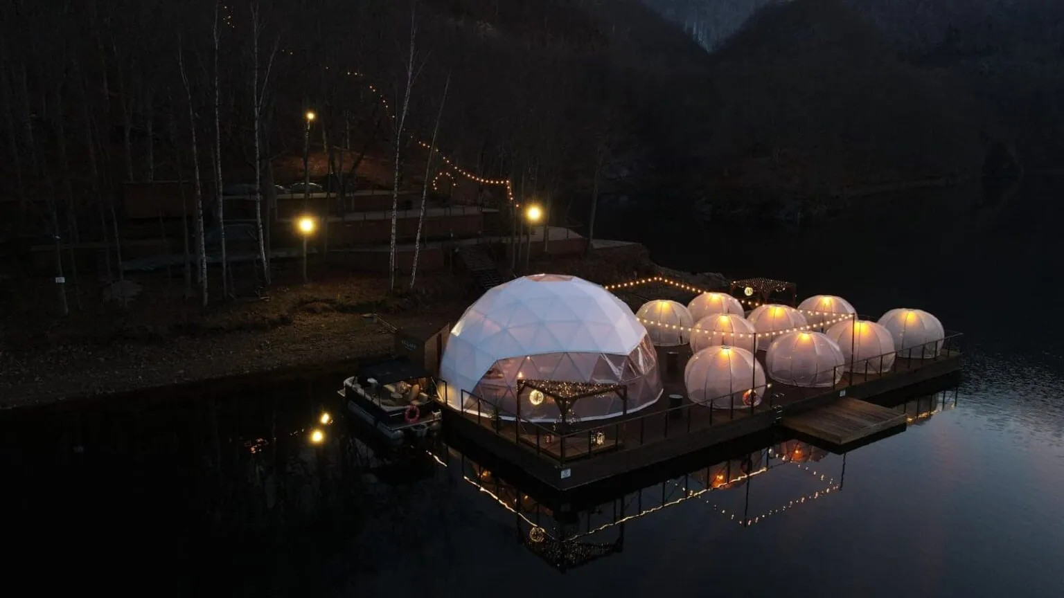 ”Villake by the Lake” este un mic sat plutitor, cu domuri ireal de pitorești, mai ales la lăsarea serii când sunt luminare, aflate pe un poton de lemn, unde poți lua cina și poți admira culorile apusului reflectându-se în apă. Pe lângă mâncarea tare bună, dacă vii aici trebuie să știi că poți face și alte activități. Te poți plimba cu bicicleta electrică pe lac, poți face plajă dacă vremea este bună, te poți răsfăța cu un pahar de vin fiert sau poți face drumeții în pădurea de pe marginea lacului, conform calatorinbascheti.ro.