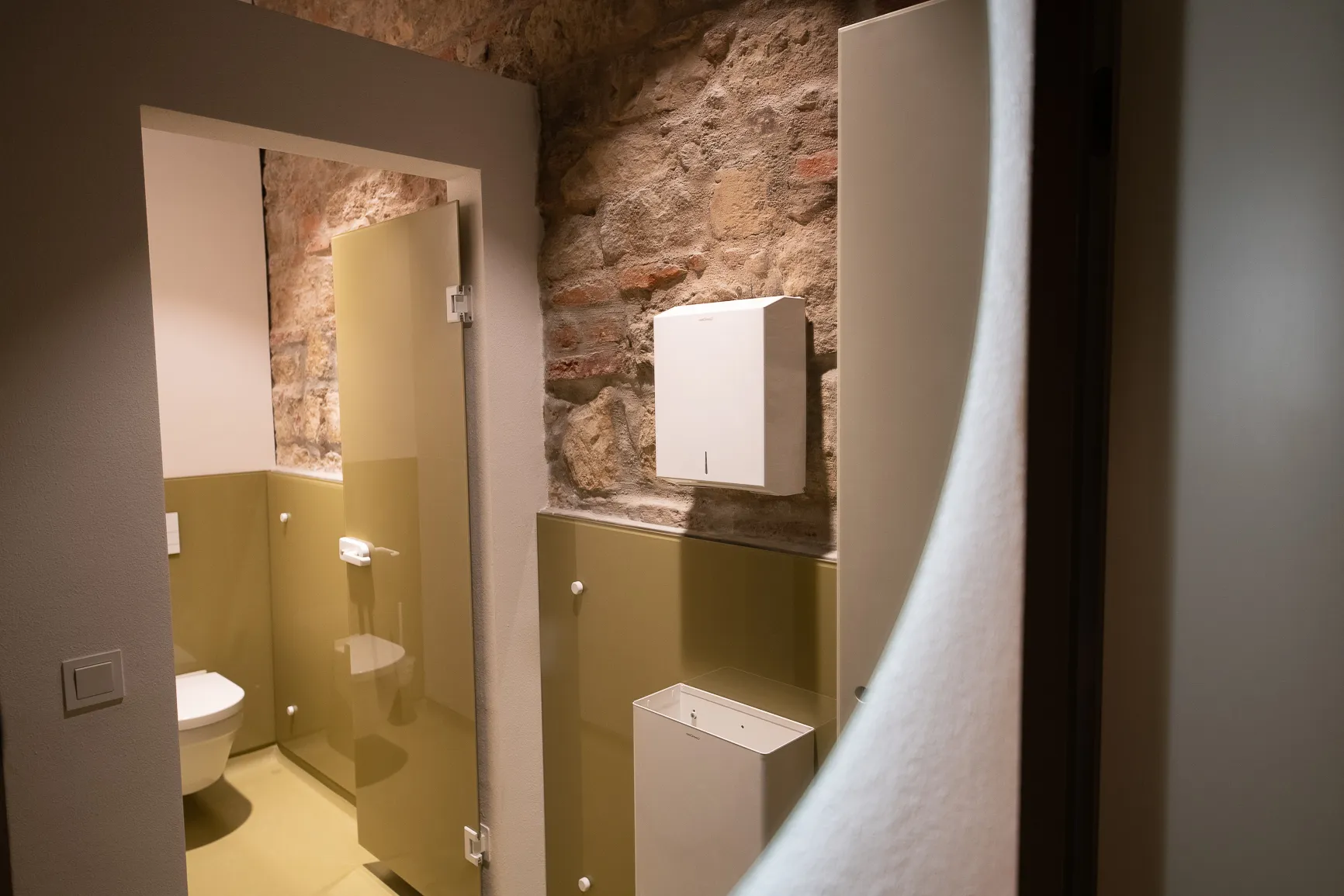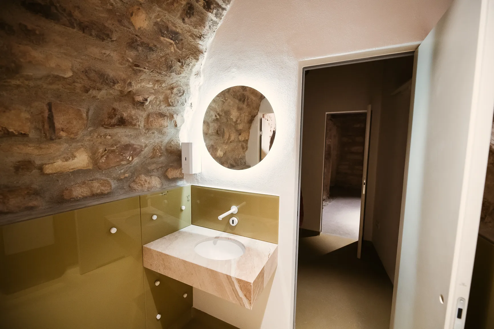 În timpul lucrărilor, prin grija proprietarului, a fost restaurată prețioasa pictură barocă din vechea officina (sala în care se vindeau medicamentele), a fost dezvelită pictura din Camera Materialis (spațiul de depozitare a materiilor prime utilizate în farmacie), a fost extins subsolul prin deschiderea sălii de sub colțul clădirii (umplută cu ocazia decupării colțului clădirii pentru realizarea pasajului pietonal, la finalul anilor 1950) și a căilor de acces zidite anterior.
