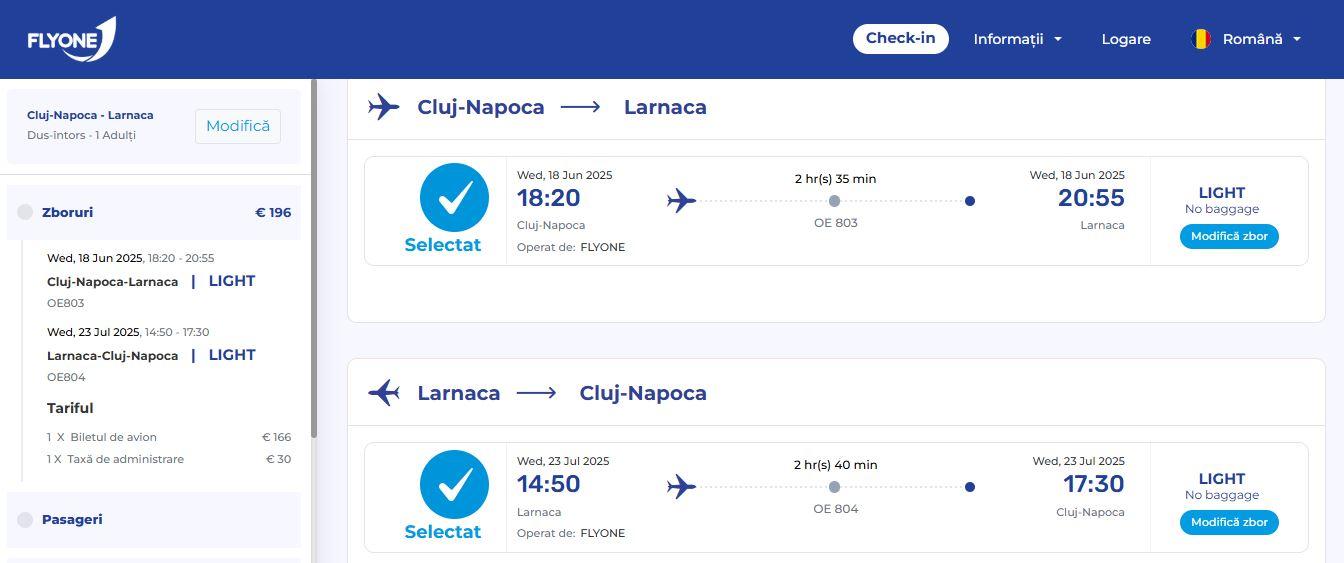 Destinația va fi Larnaca, Cipru, iar pretul unui bilet dus-întotrs va fi în jur de sub 200 euro (fără bagaje, care se taxează suplimentar, între 30-90 de euro în funcție de numărul și dimensiune bagajelor).