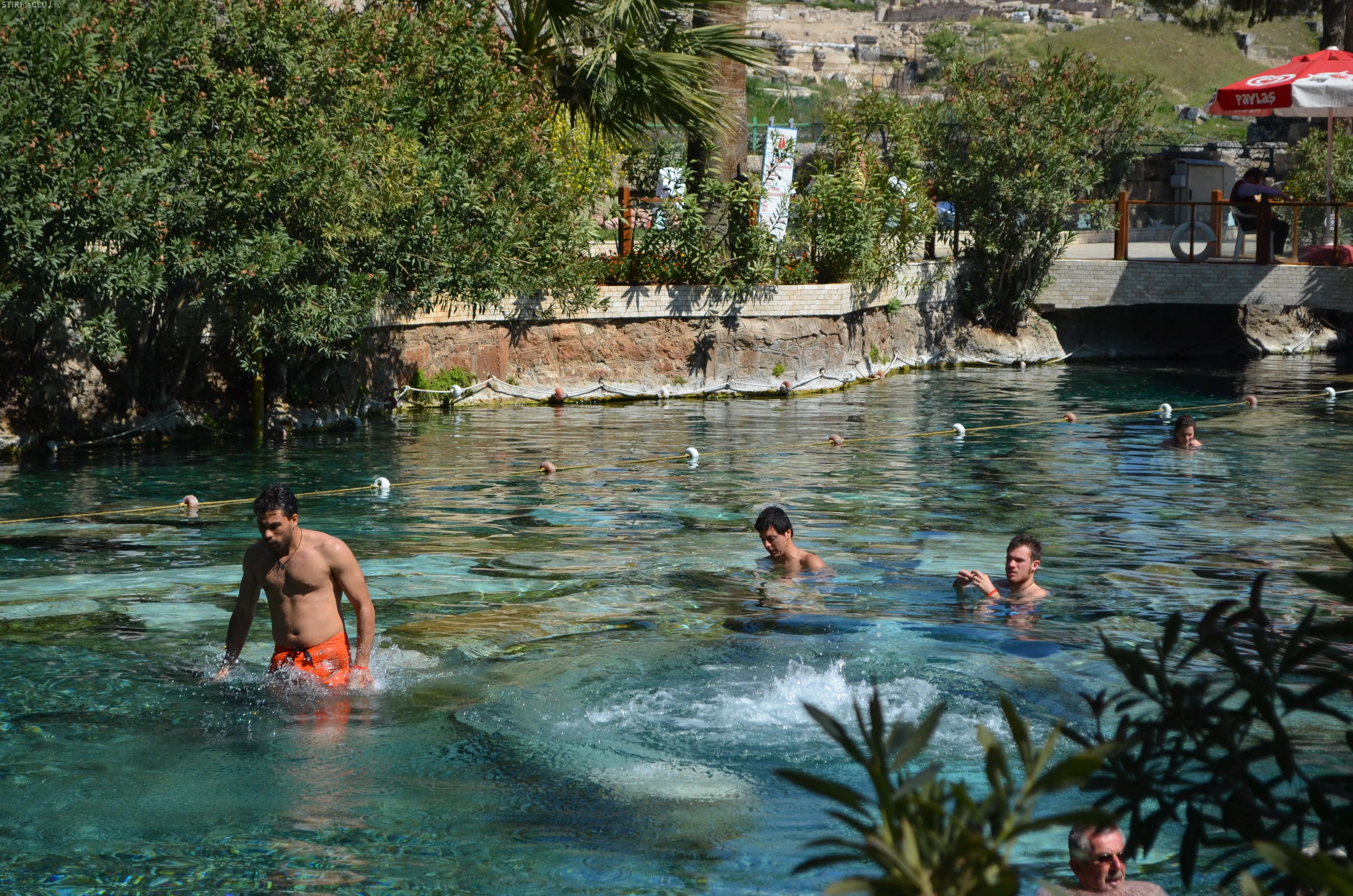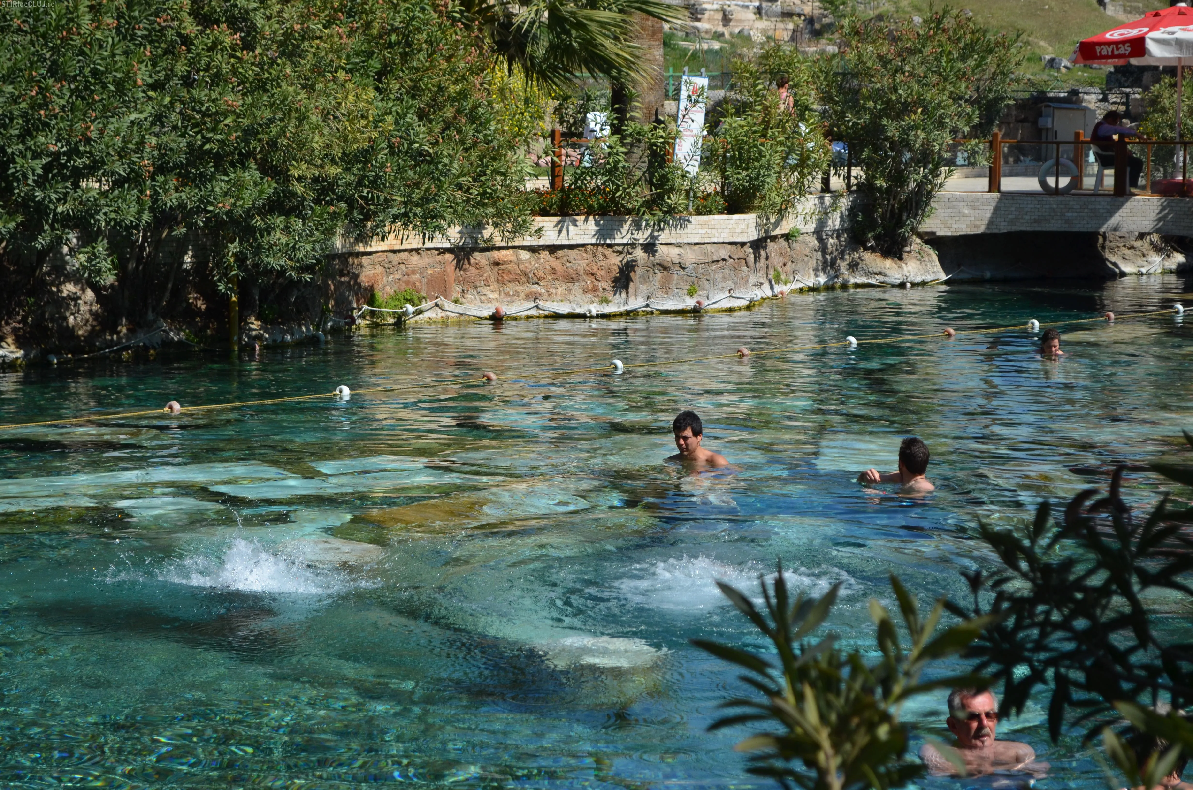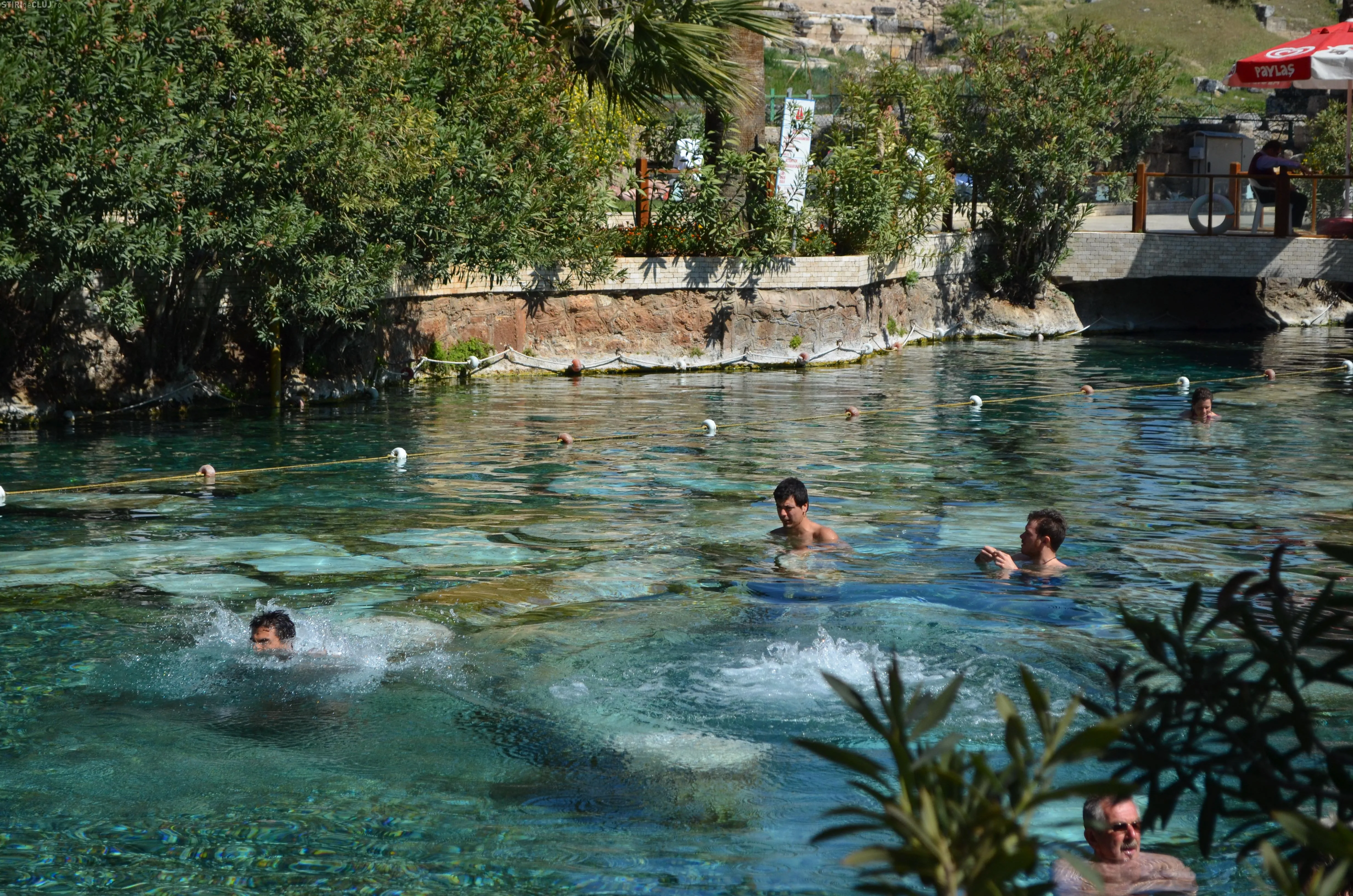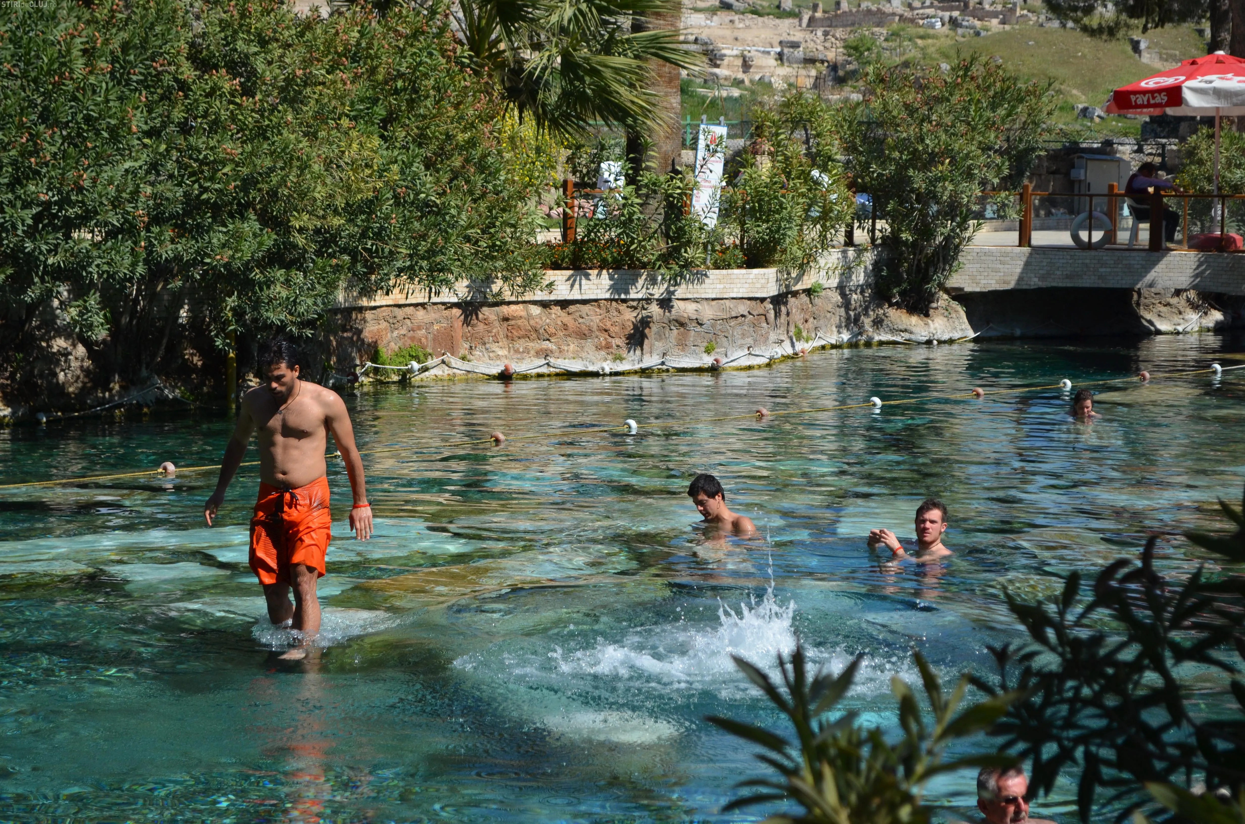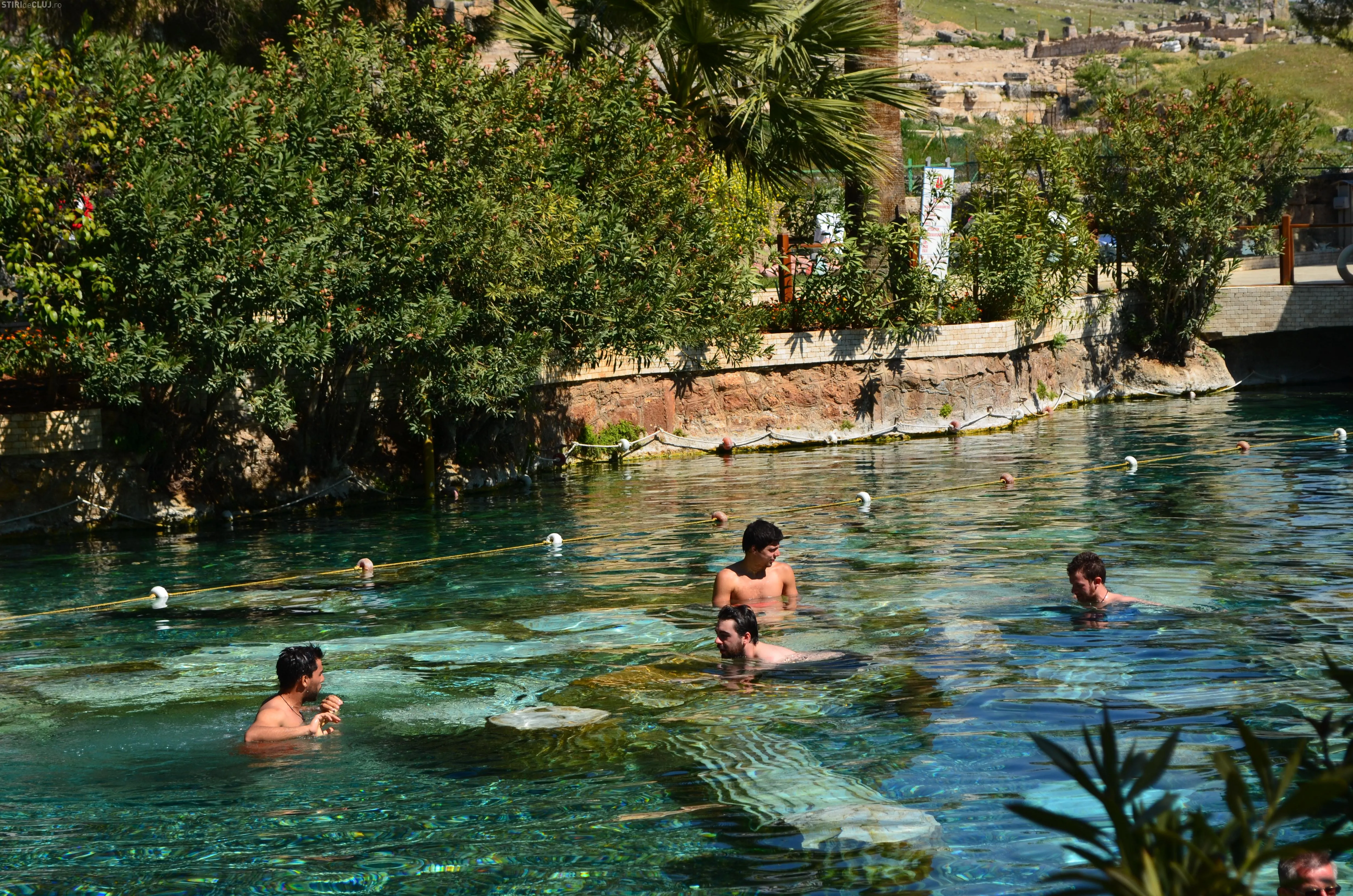 Ajunși acolo, am vrut să vedem mai întâi piscina Cleopatrei, despre care se spune că odată ce te-ai îmbăiat în ea, întinerești cu 10 ani. Am încercat apa cristalină, care are peste 36 de grade și care, la sfârșit de martie, era tocmai bună pentru a face o baie. Miracolele întineririi au întârziat să apară, însă, în cazul nostru, deși toți am fi dat fără regrete timpul înapoi cu 10-15 ani. Poate am fost noi mai ghinioniști, dar cine poate ști în cazul Dvs? Poate că dacă veți testa beneficiile Cleopatrei, veți avea mai mult noroc. Oricum glumele s-au ținut lanț și clipele petrecute la piscină rămân memorabile.