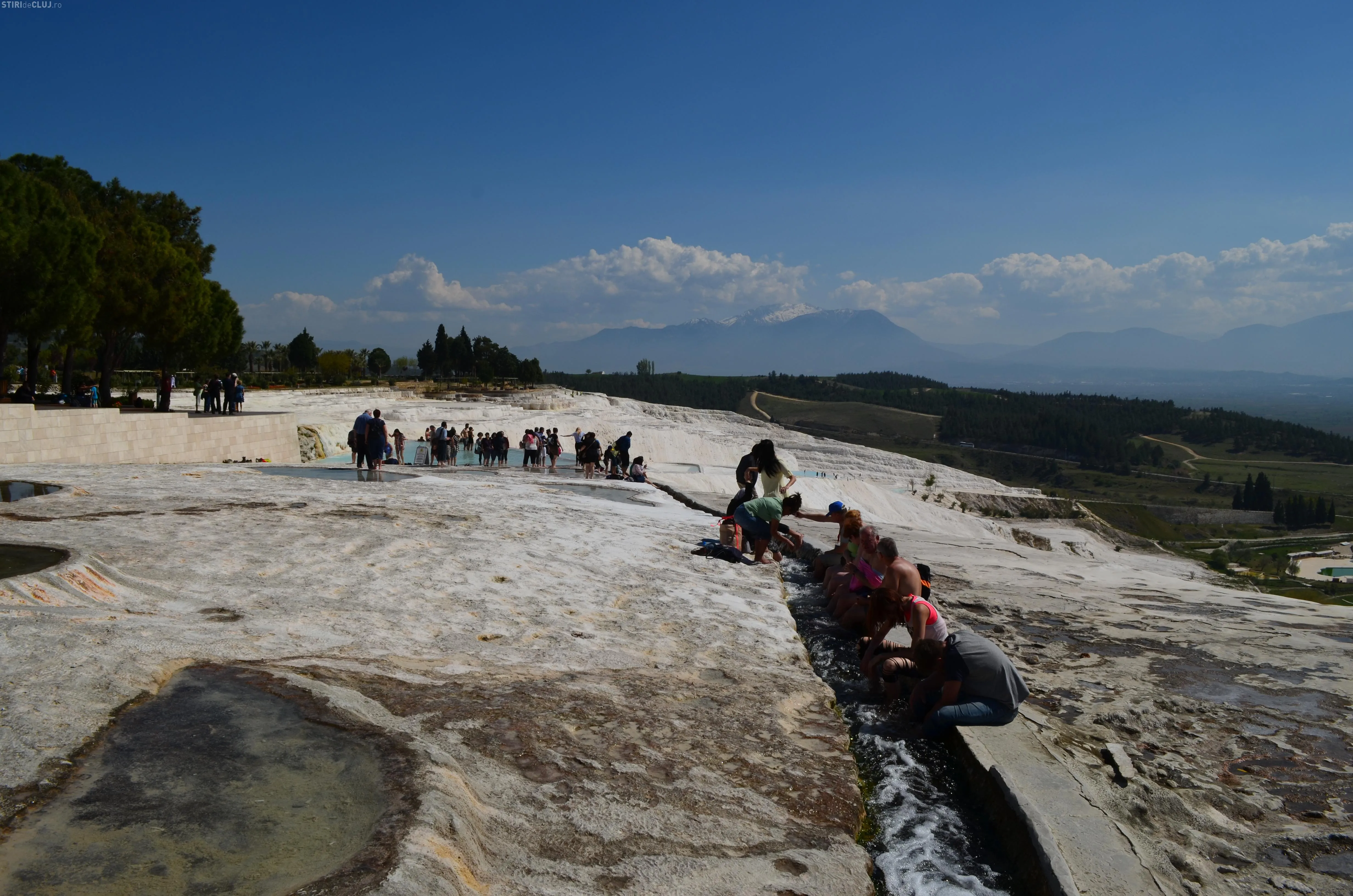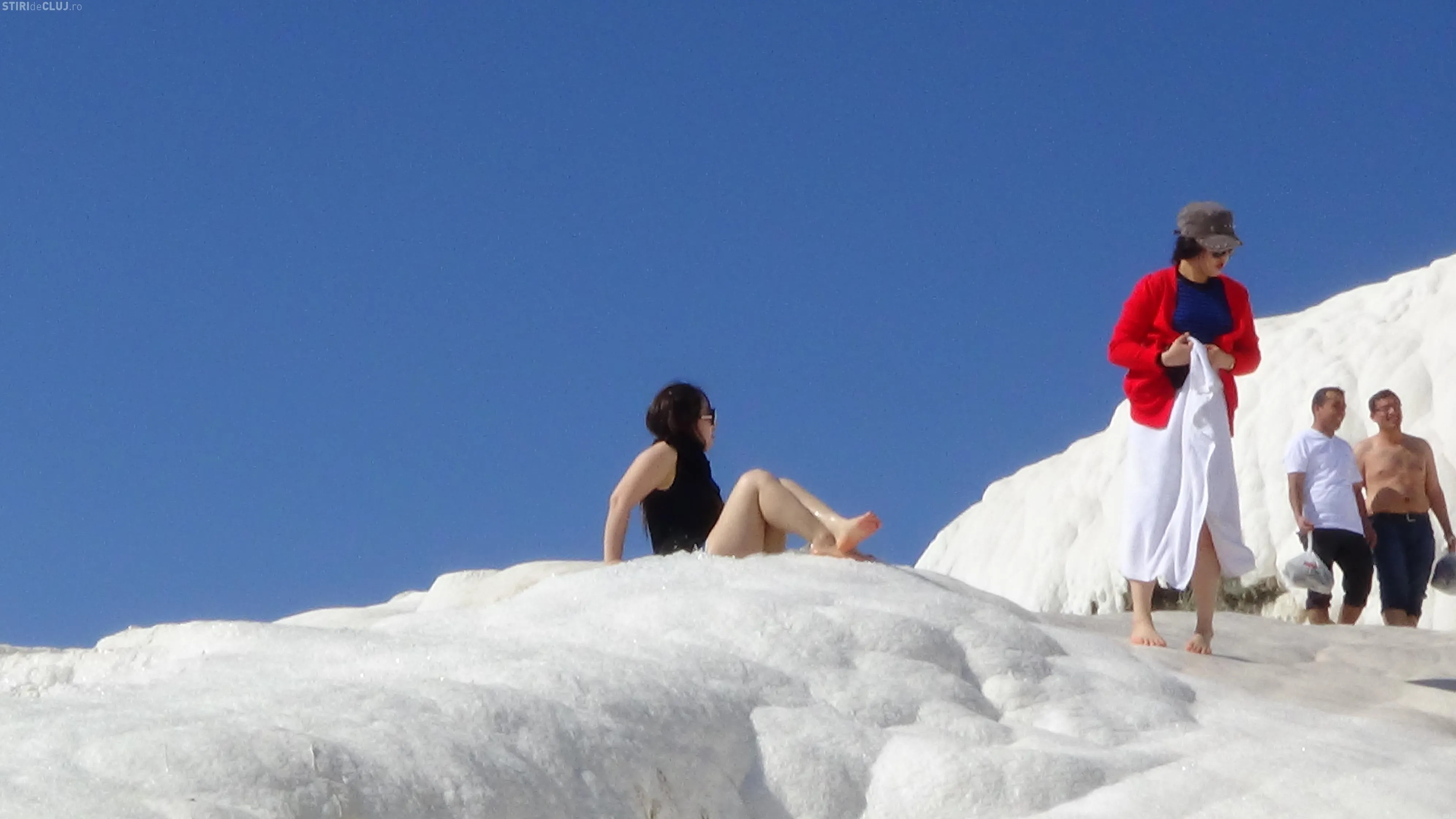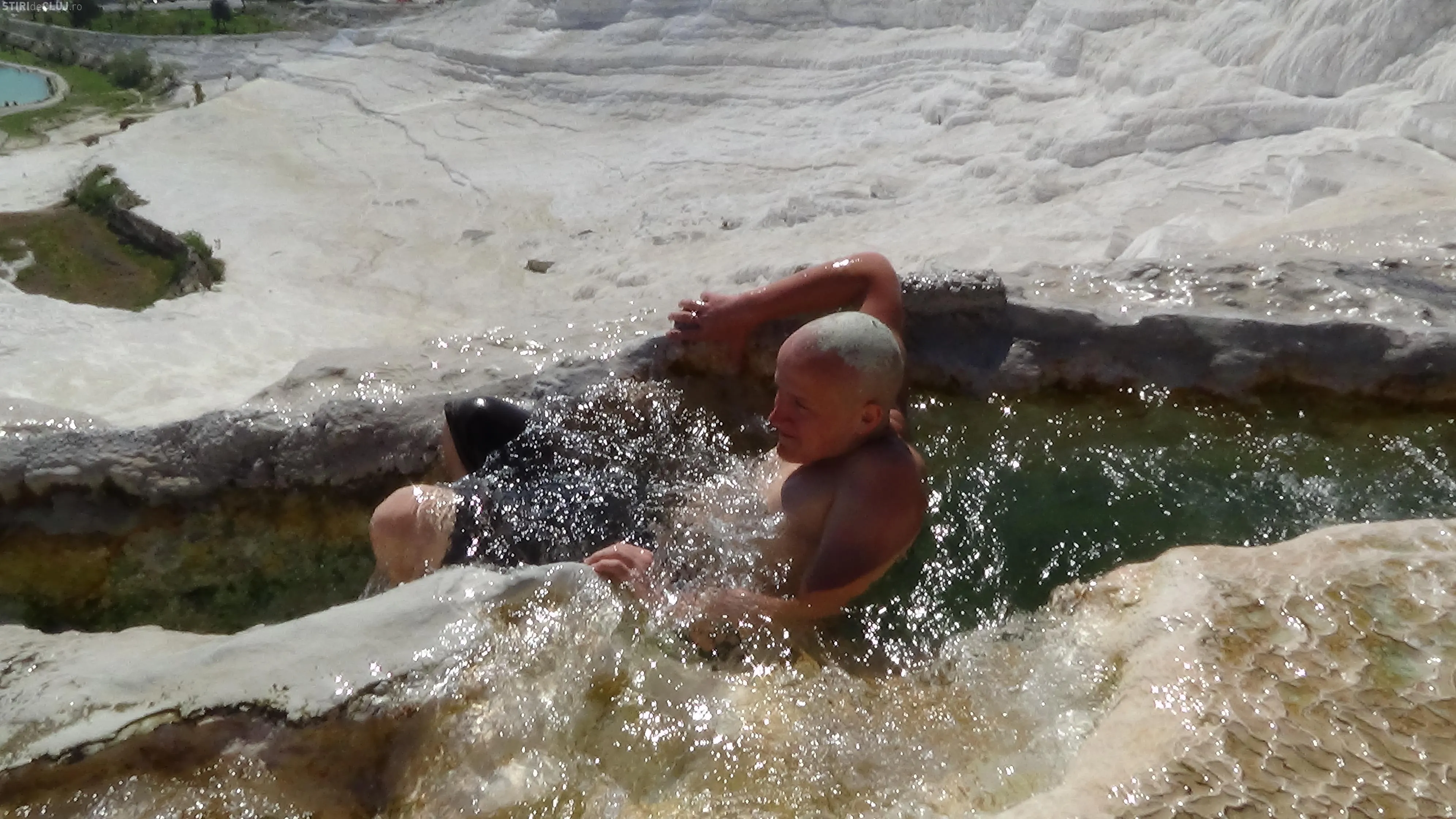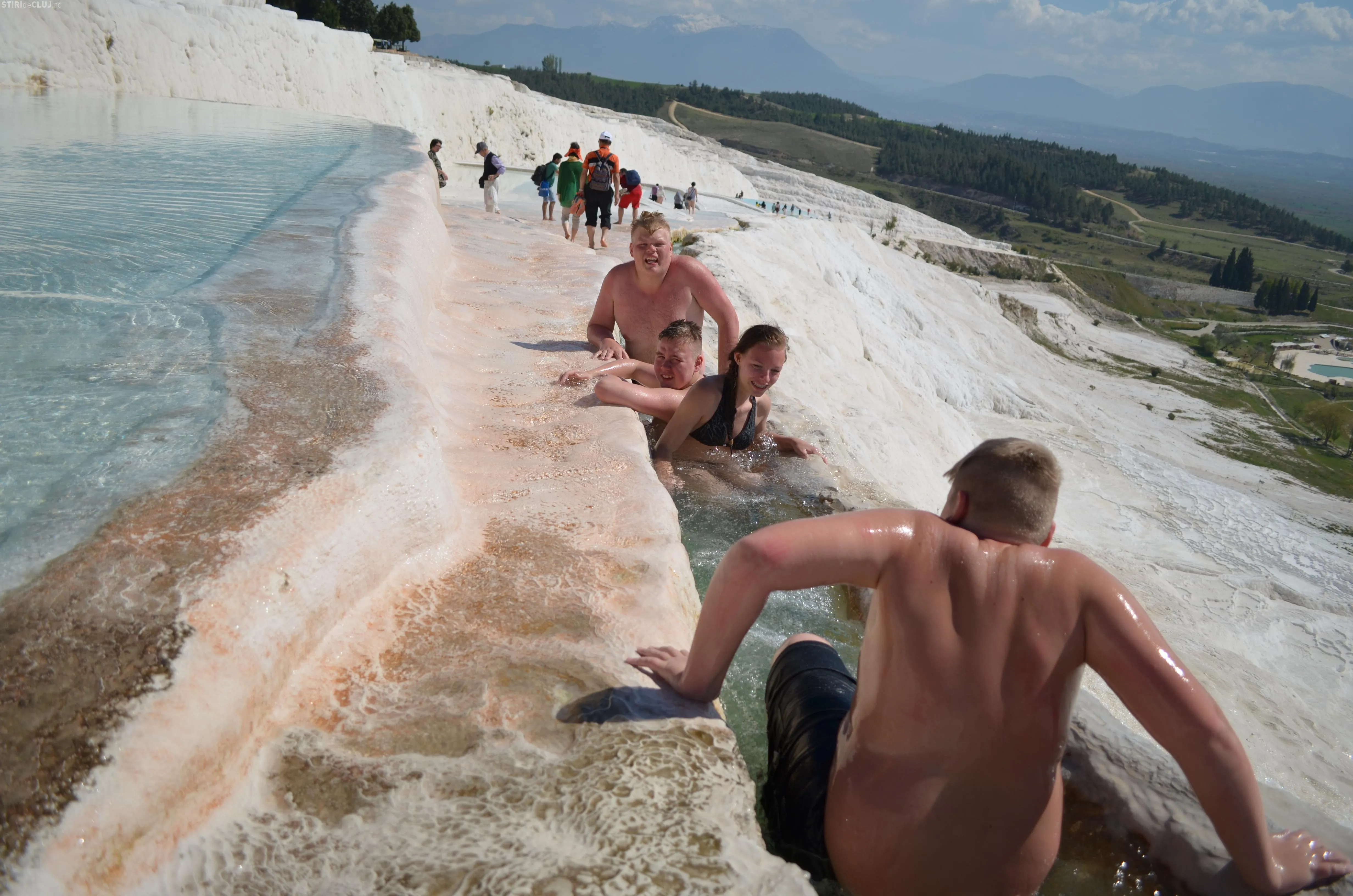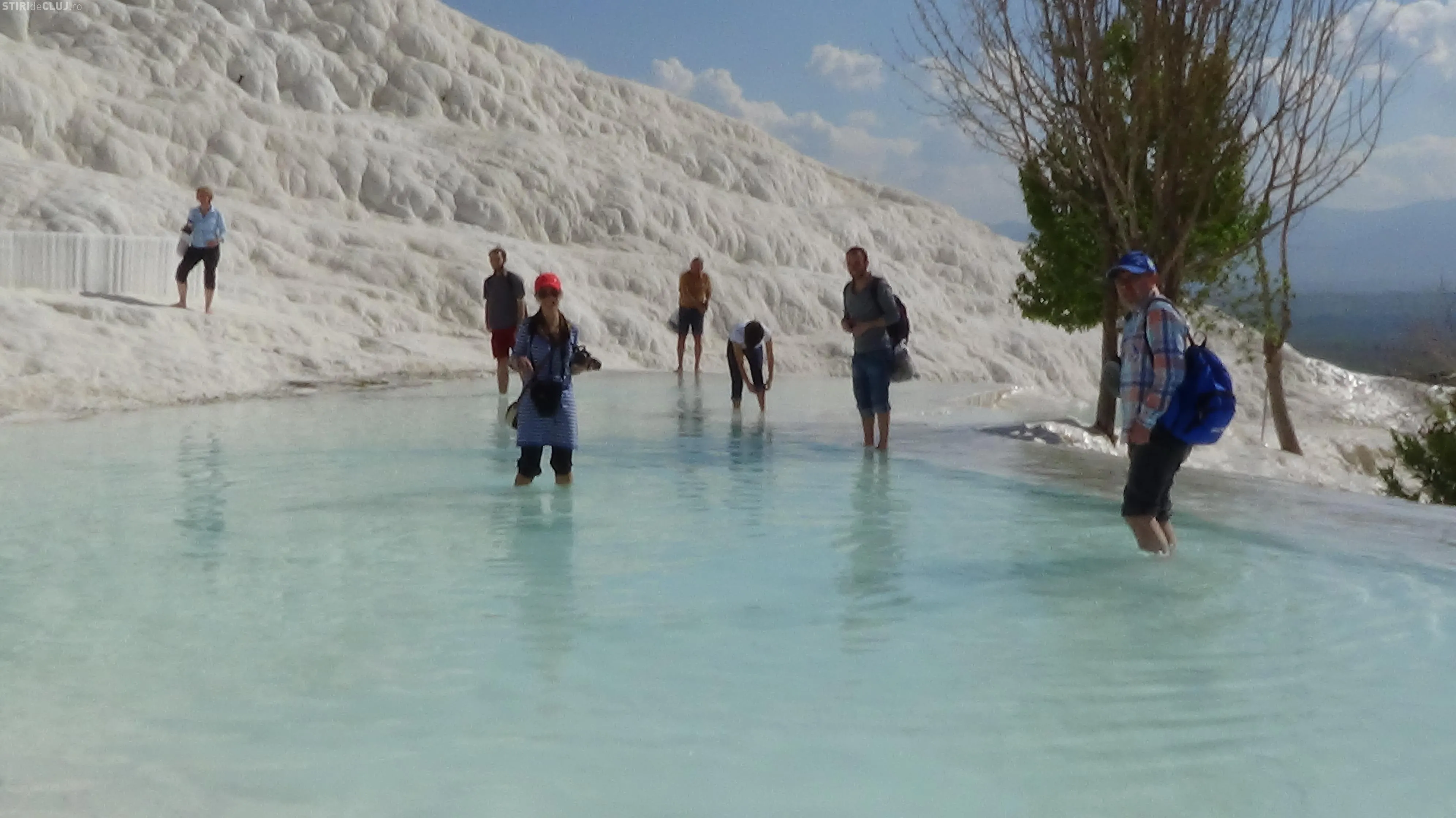 Ajunși acolo, am vrut să vedem mai întâi piscina Cleopatrei, despre care se spune că odată ce te-ai îmbăiat în ea, întinerești cu 10 ani. Am încercat apa cristalină, care are peste 36 de grade și care, la sfârșit de martie, era tocmai bună pentru a face o baie. Miracolele întineririi au întârziat să apară, însă, în cazul nostru, deși toți am fi dat fără regrete timpul înapoi cu 10-15 ani. Poate am fost noi mai ghinioniști, dar cine poate ști în cazul Dvs? Poate că dacă veți testa beneficiile Cleopatrei, veți avea mai mult noroc. Oricum glumele s-au ținut lanț și clipele petrecute la piscină rămân memorabile.