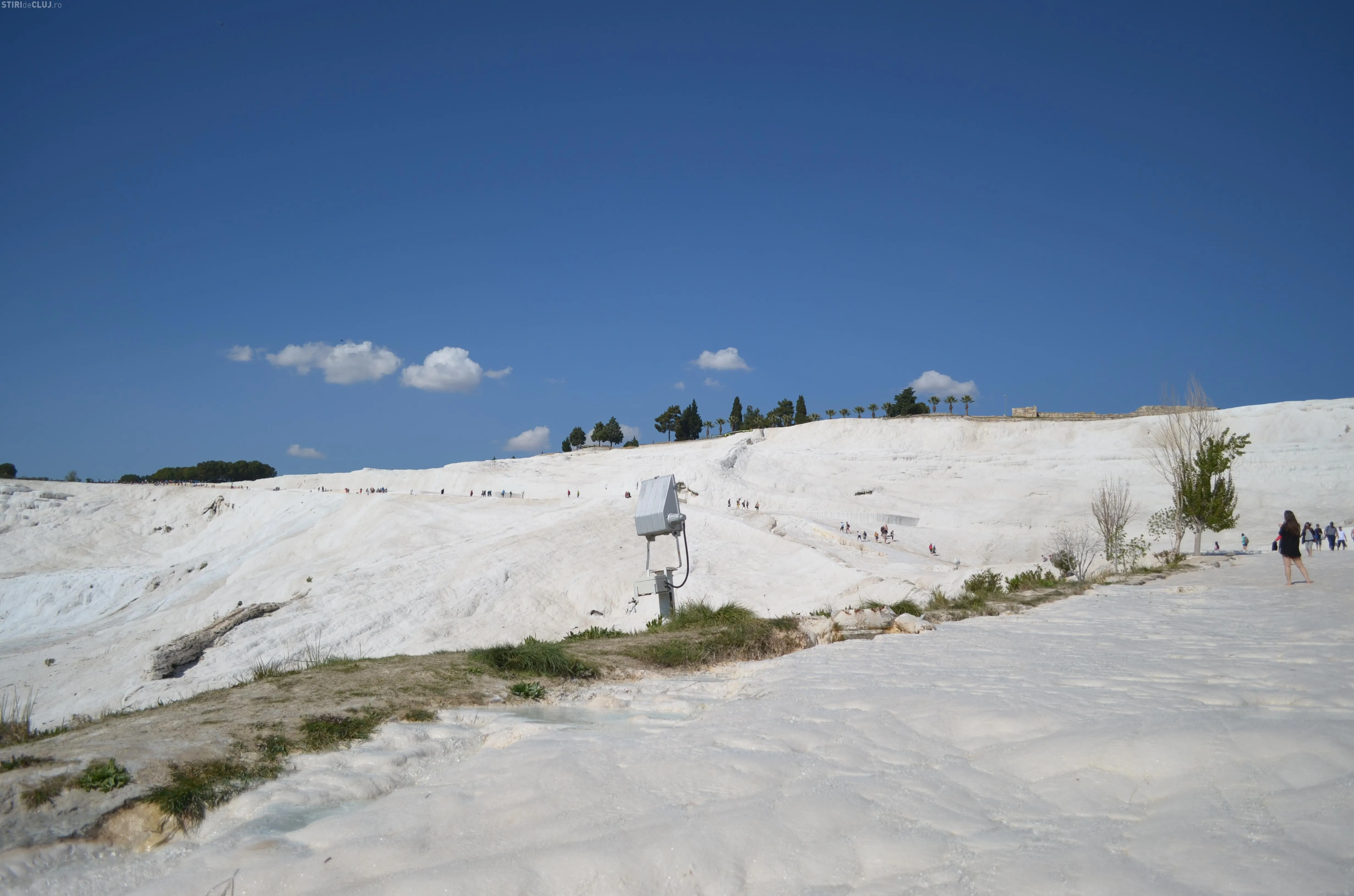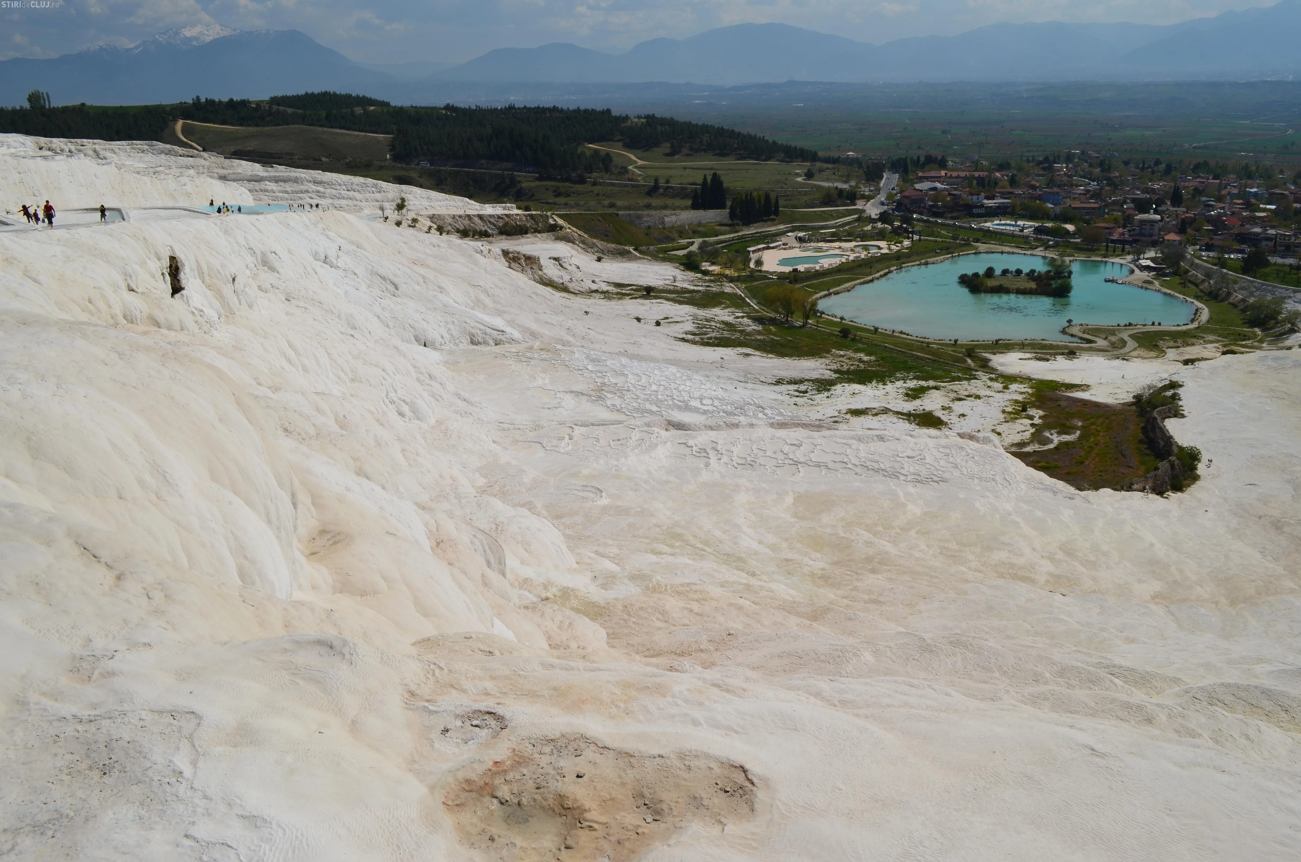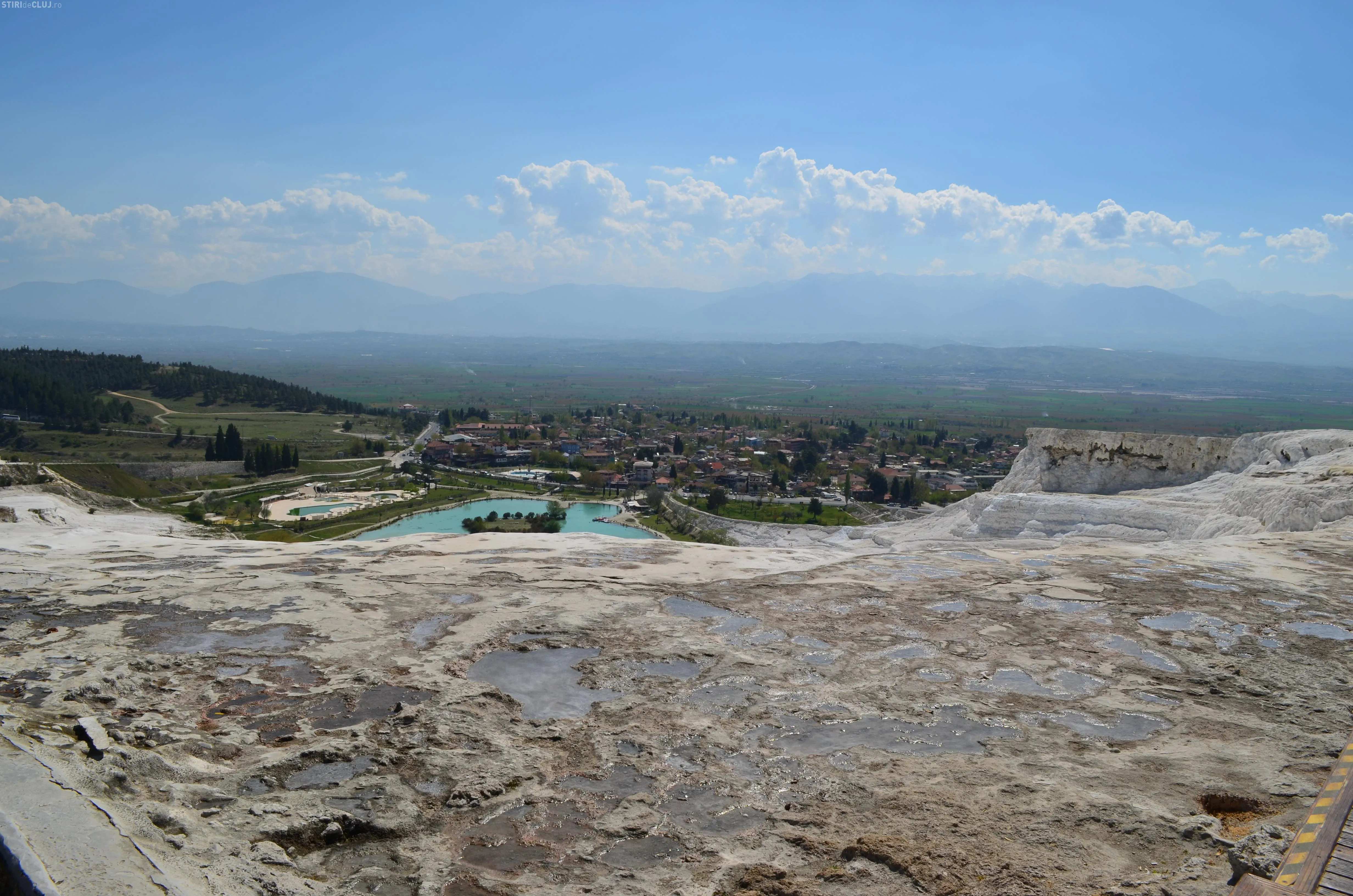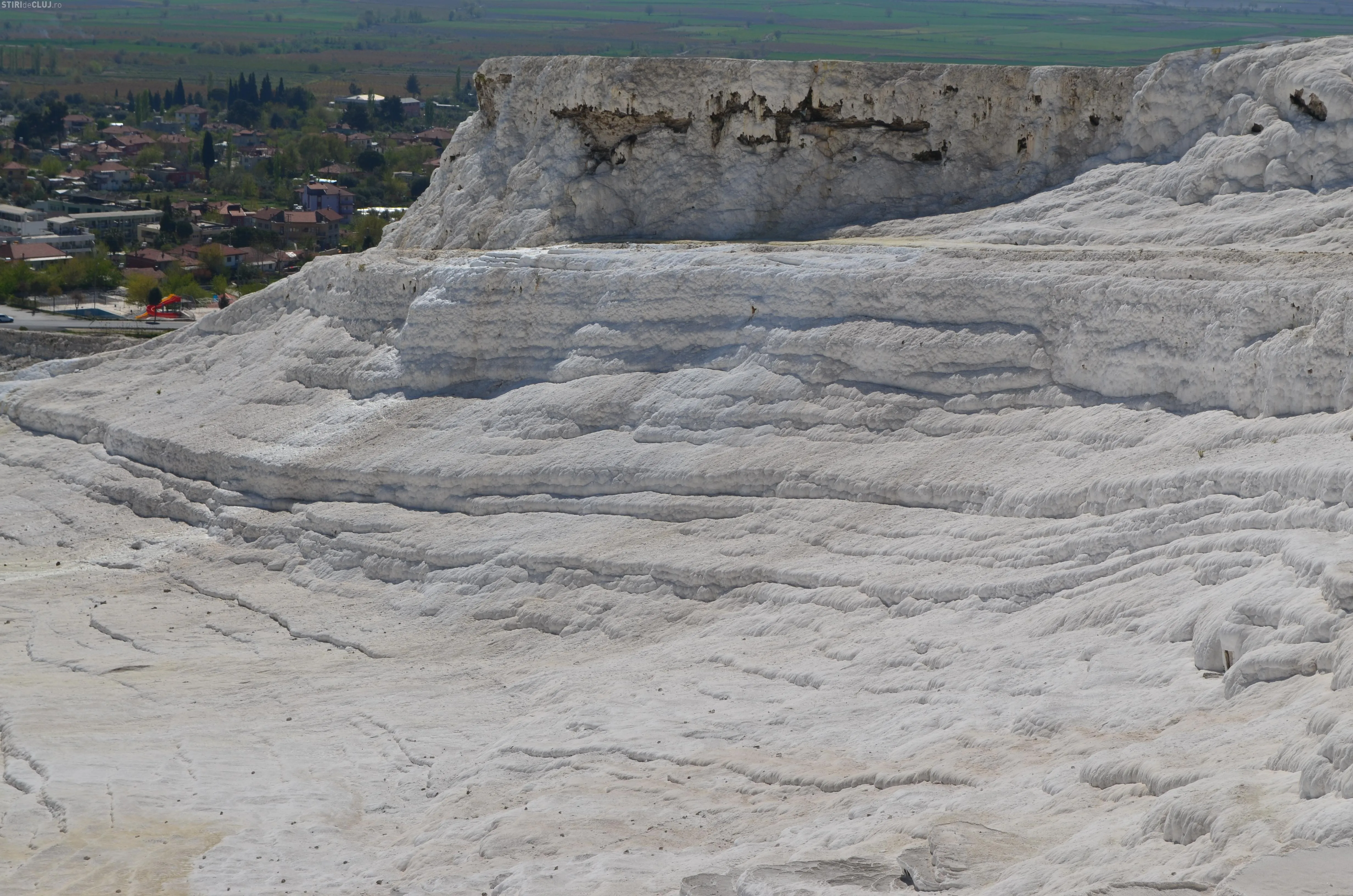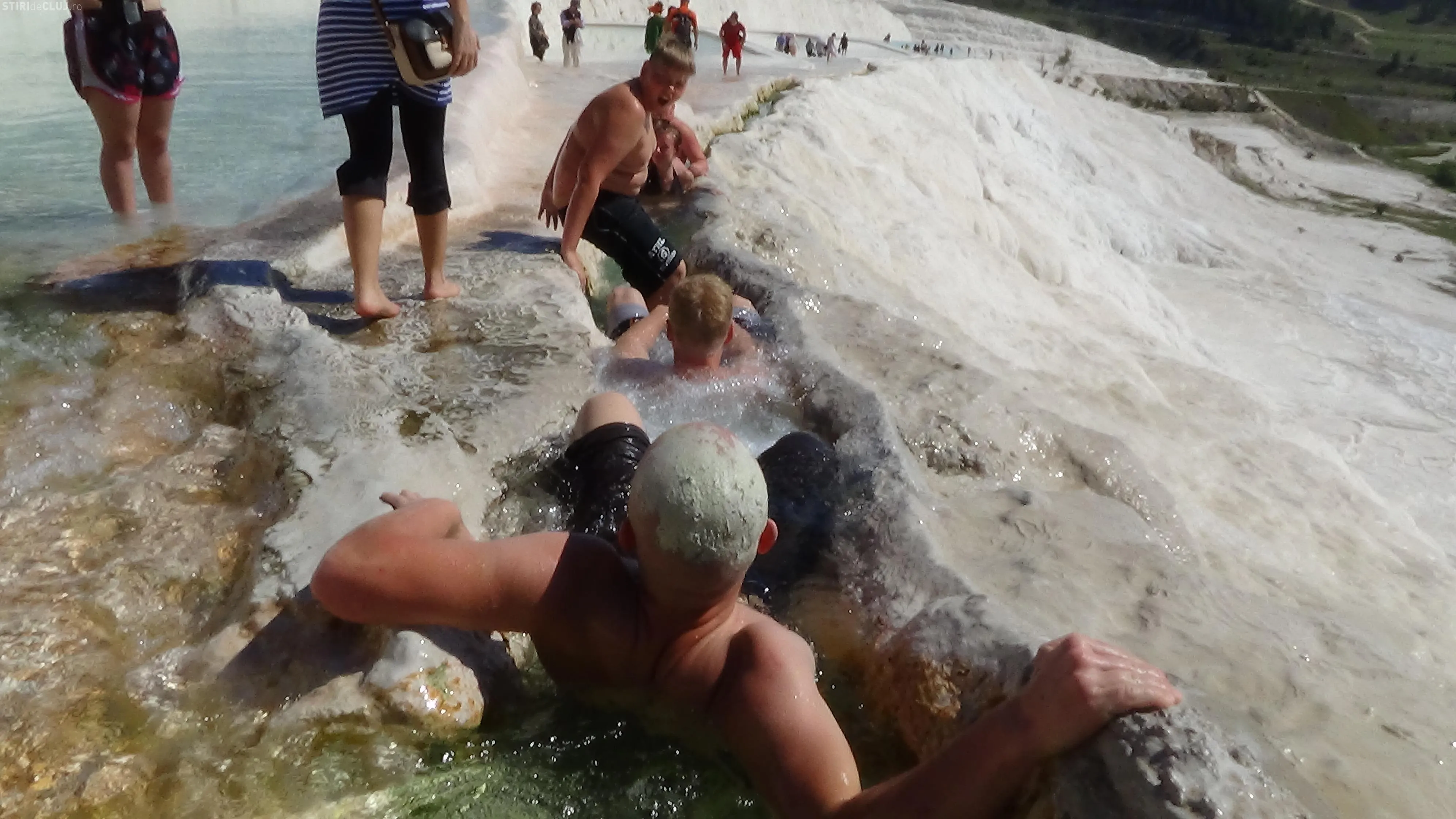 Ne-am îndreptat, într-un final, pașii spre Pamukkale. ”Palatul de bumbac” este un fenomen al naturii, unic in lume, care seamănă cu o cascadă cu apa înghețată. Apele minerale de la Pamukkale izvorăsc din muntele Kal Dagi, care se afla în Anatolia de Vest. Apa iese din adâncuri cu o temperatura de 35 de grade și cade cu putere formând, de-a lungul timpului, sute de terase pitorești de calcar.