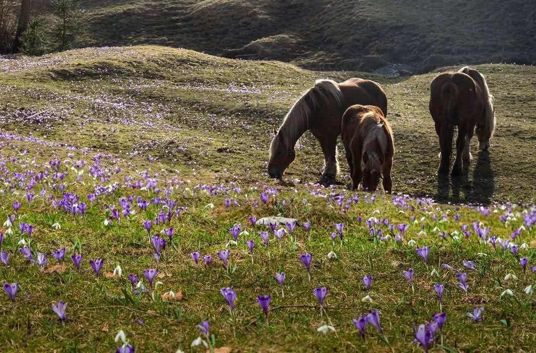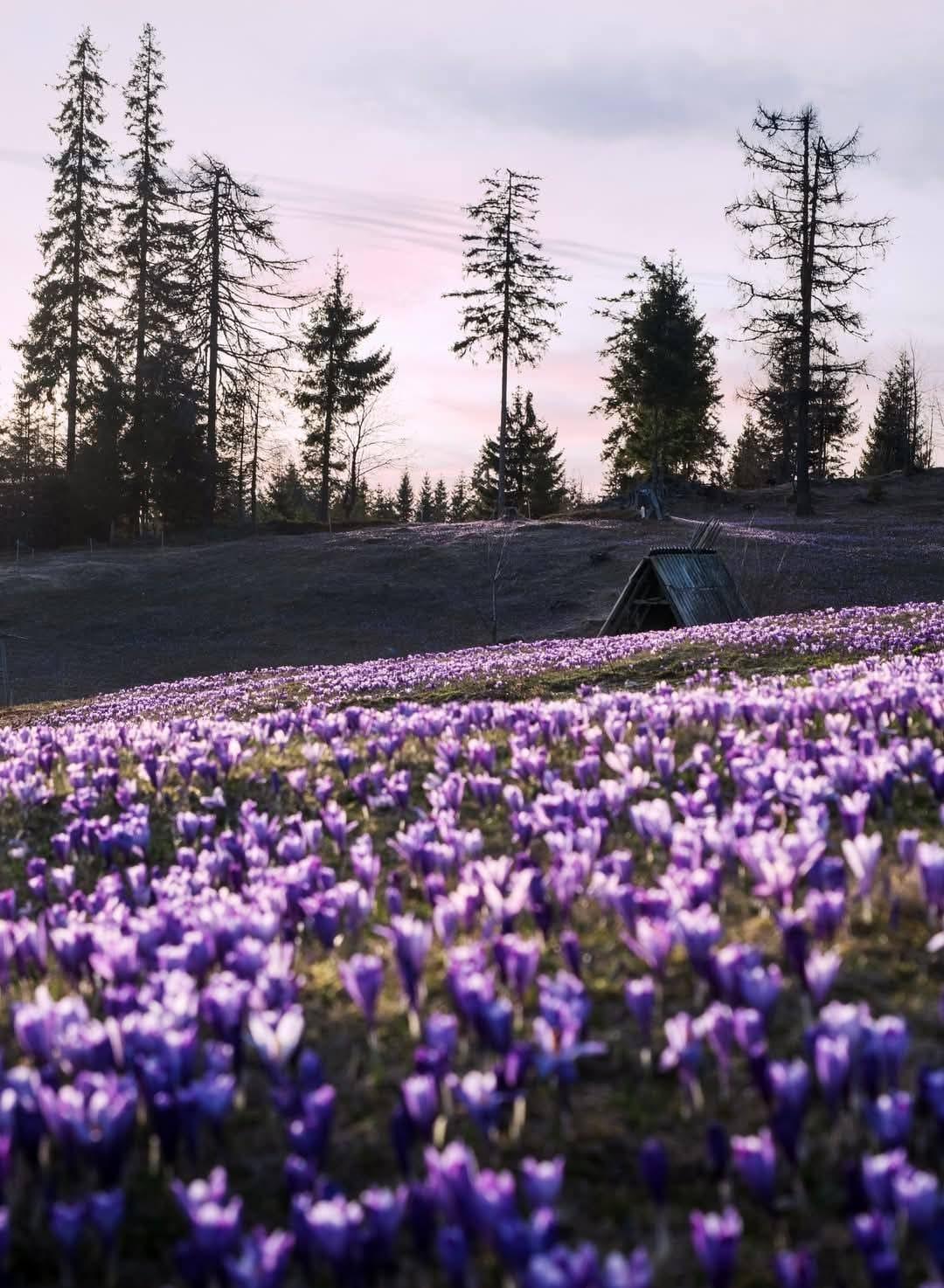 În ciuda vremii capricioase, dealurile și pădurile s-au umplut de flori de primăvară. Poiana Călineasa - „reședința“ de vară a moților, situată la cota 1400 m în masivul Bihor, s-a transformat într-un paradis mov. Brândușele au înflorit, iar pajiștile sunt complet acoperite de flori.