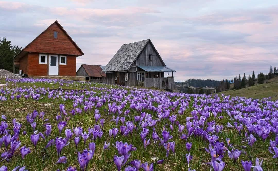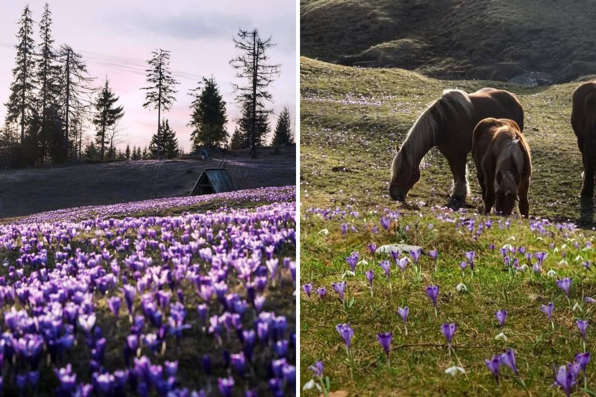 Paradisul mov din Apuseni poate fi admirat! Un sat aflat la 2 ore de Cluj s-a transformat într-un colț de rai plin de brândușe FOTO