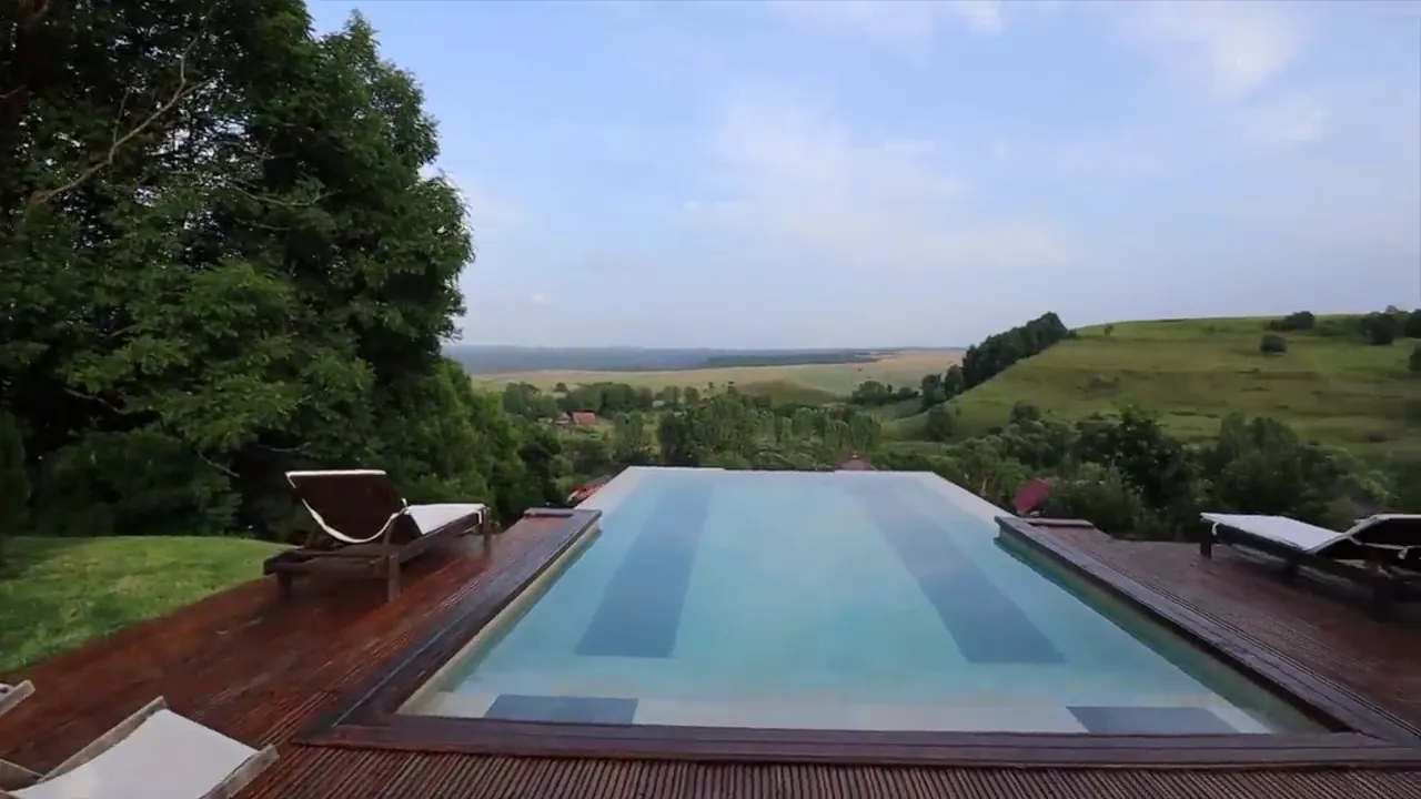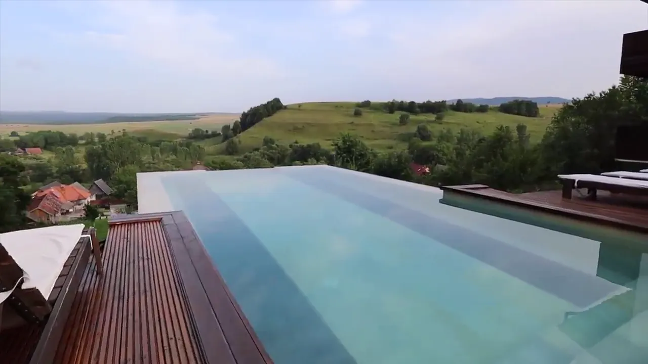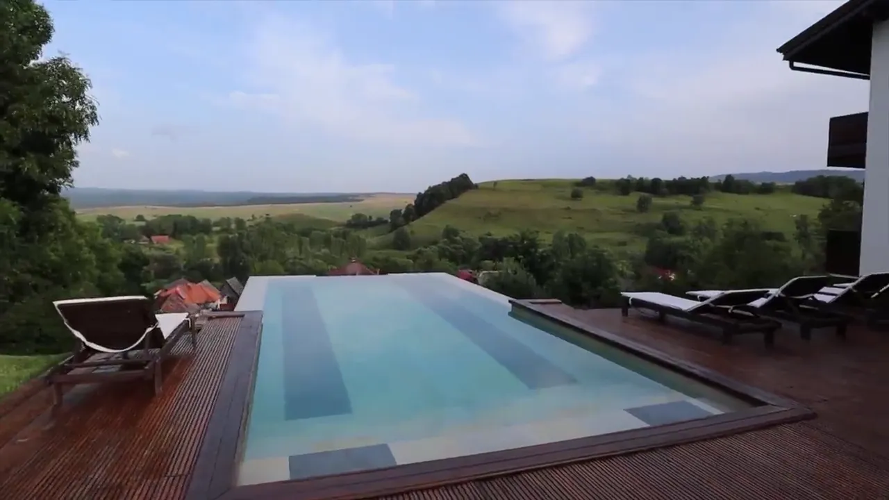 Pensiunea are numai 5 camere, dar piscina tip Infinity este absolut demențială. Proprietarul o închiriază numai pentru evenimente de grup, nu se fac chefuri și nu se consumă alcool.