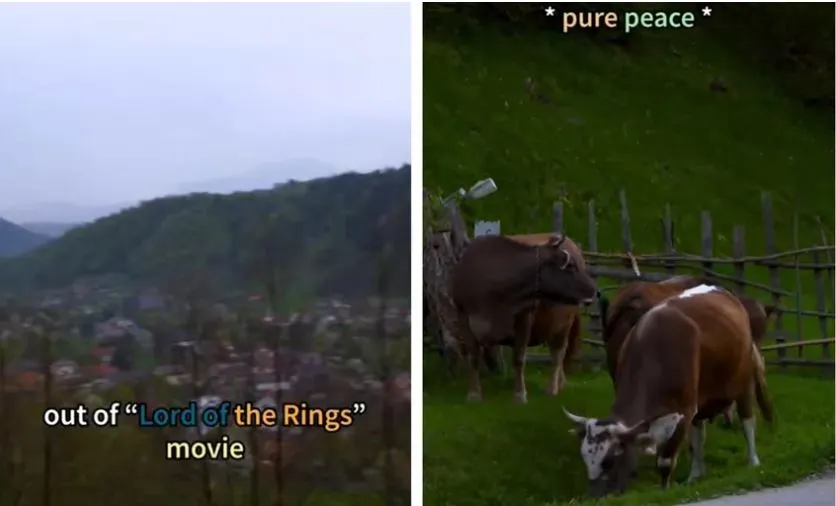 Fără suflare. Natura este peste tot aici. Frumoși munți! E atât de liniște aici”, spune americanul în video.