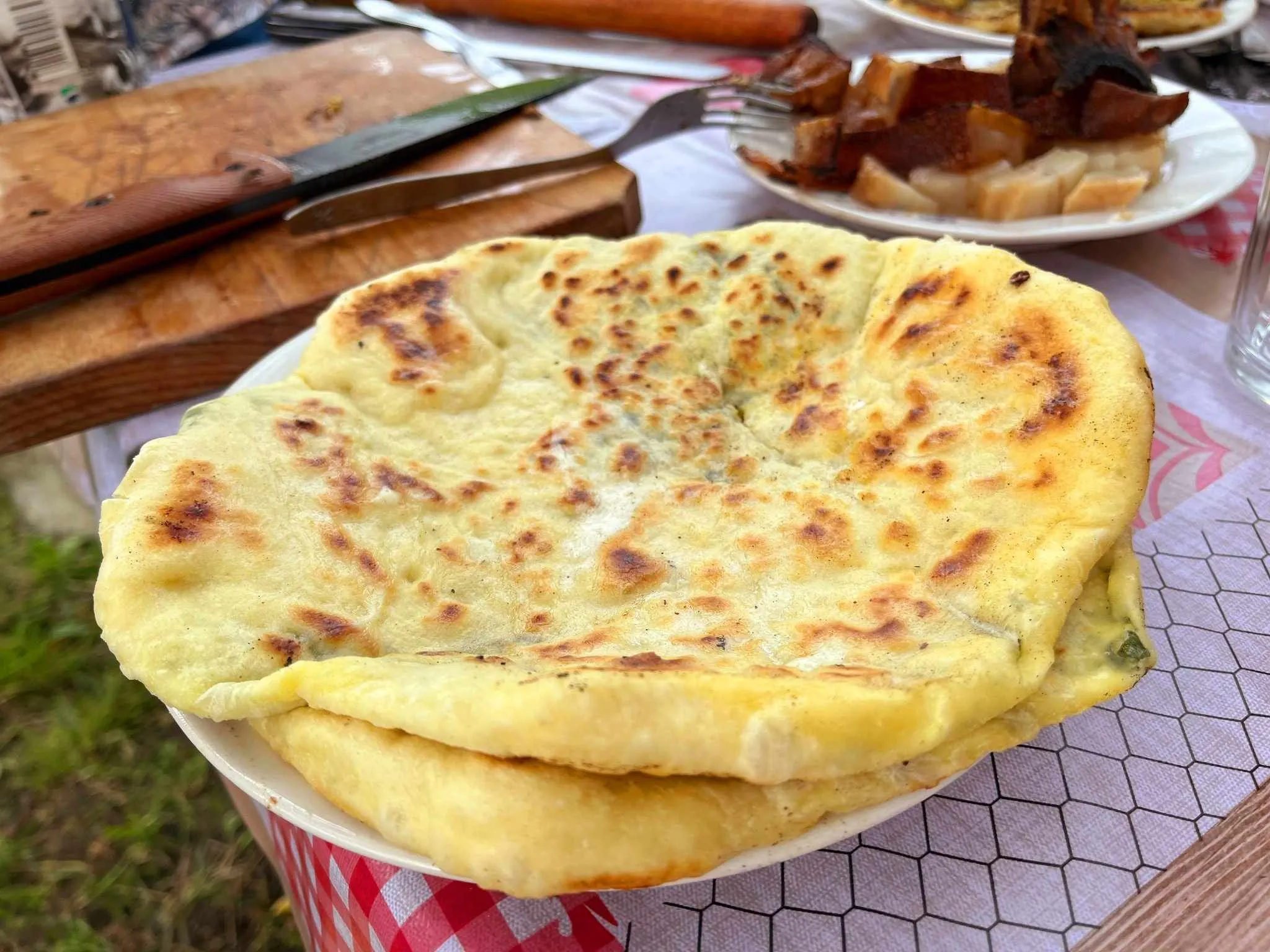 „Scriu și câteva exemple de feluri de mâncare din meniuri și cum se succed ele, multe dintre acestea savurate de subsemnata cu mare poftă. Dacă începi cu un antreu – sub forma unei tarte cu aluat fraged și carne condimentată din cârnații afumați ai casei (din carne de porc și vițel), cu fasole verde murată alături, urmează apoi paste făcute în casă (tocmai scoase de pe foc) cu hribi, gălbiori și brânză maturată. Bineînțeles, în completare vine și un desert și, bineînțeles brânza maturată a casei.