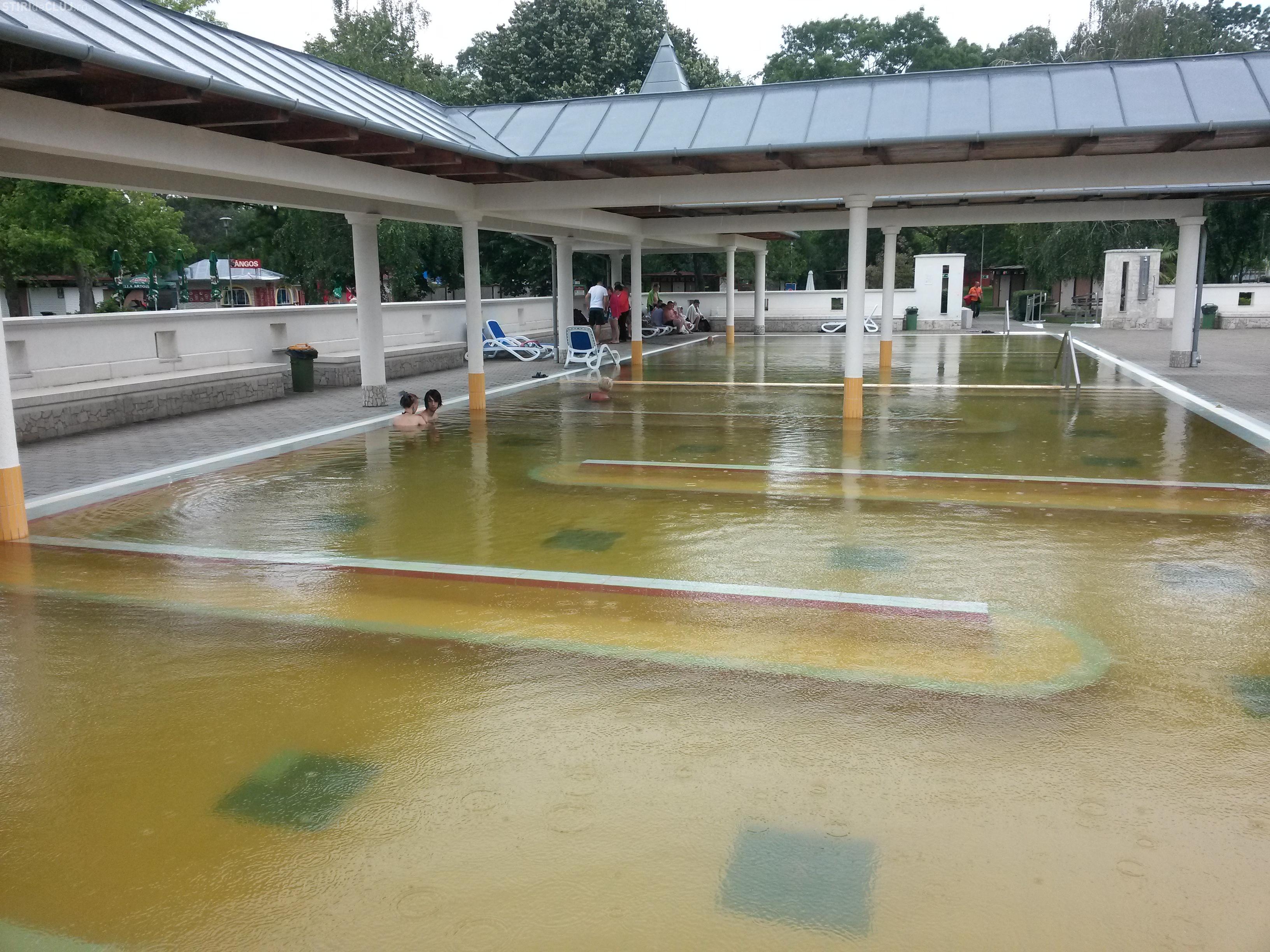 Băile Aquarius ne-au captat atenția încă de la început. Funcționale din anii 20, băile au trecut prin diverse procese de modernizare și extindere. Statul maghiar a investit anii trecuți 2,5 miliarde de forinți în modernizarea ștrandului, iar alte 72 de milioane de forinți au fost folosite pentru refacerea hotelului situat chiar în vecinătate. Banii au venit din fonduri europene.