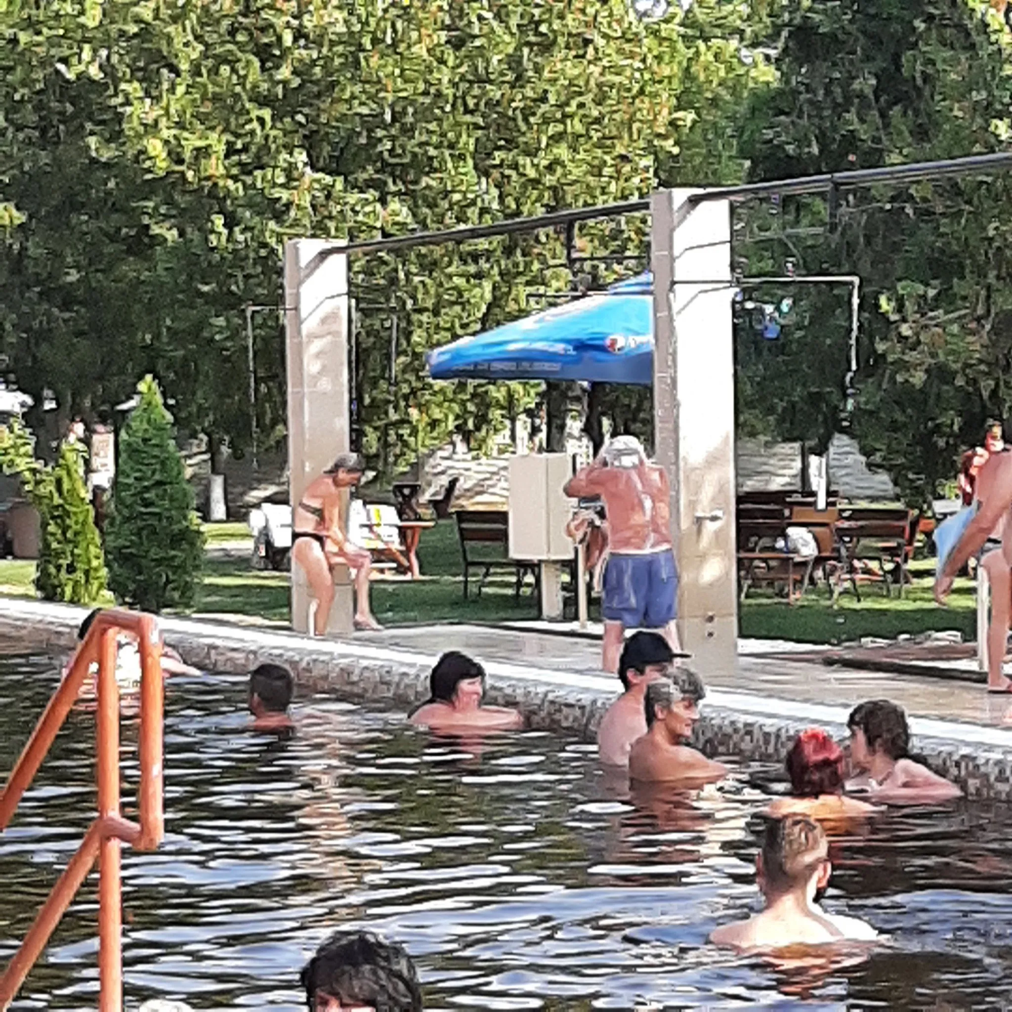 Aici aveti ocazia de a petrece clipe placute descoperind un strand cu apa termala cochet, curat (inclusiv toaletele si cabinele pentru schimbat). Strandul are mai multe bazine bine ingrijite printre care:
