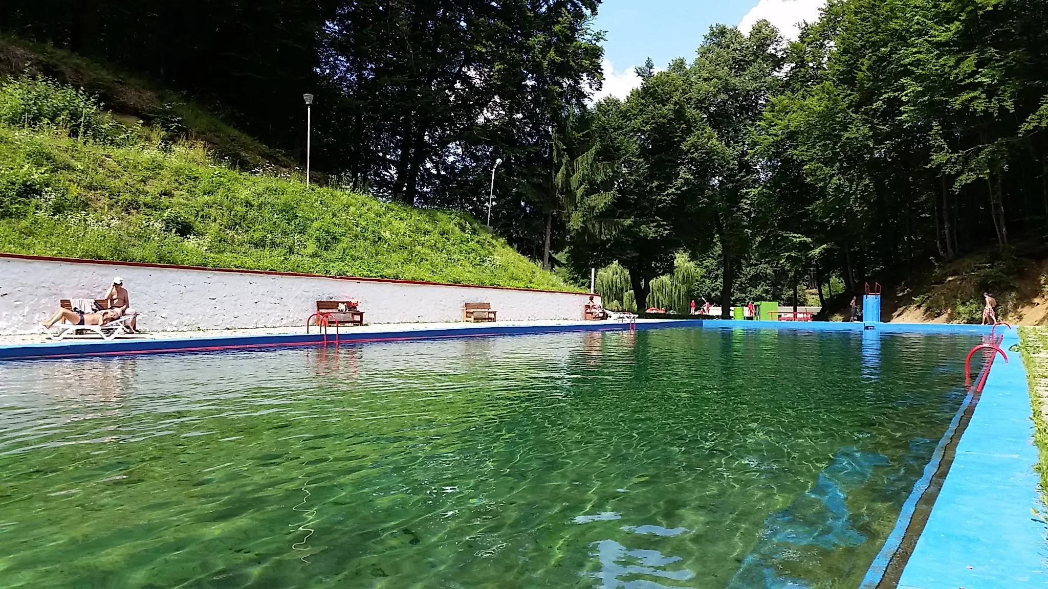 ”Bazinul a fost căptușit cu bârne de brad, iar fundul nu a fost betonat. Apa e curată și te relaxează. Se zice că este meteo termală și tot timpul are 18 grade”, a spus un turist.